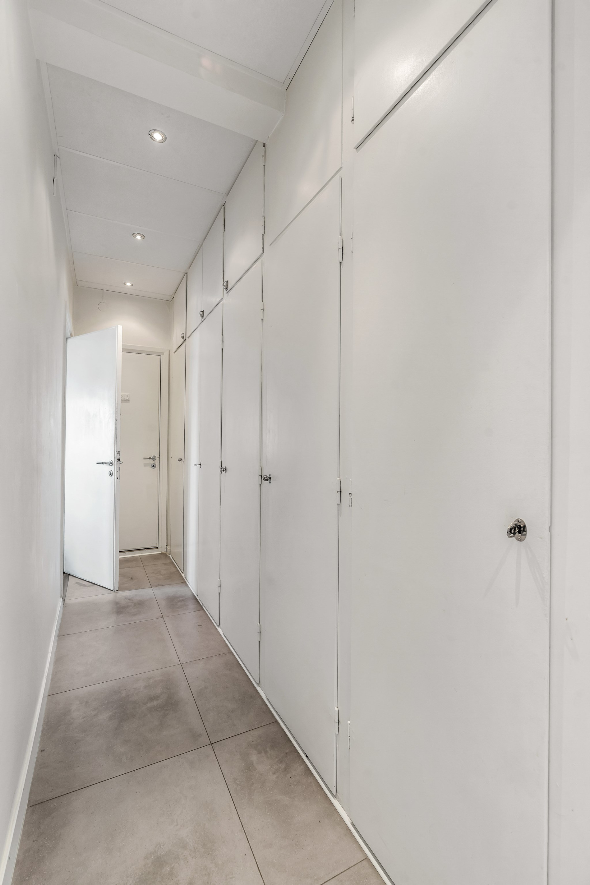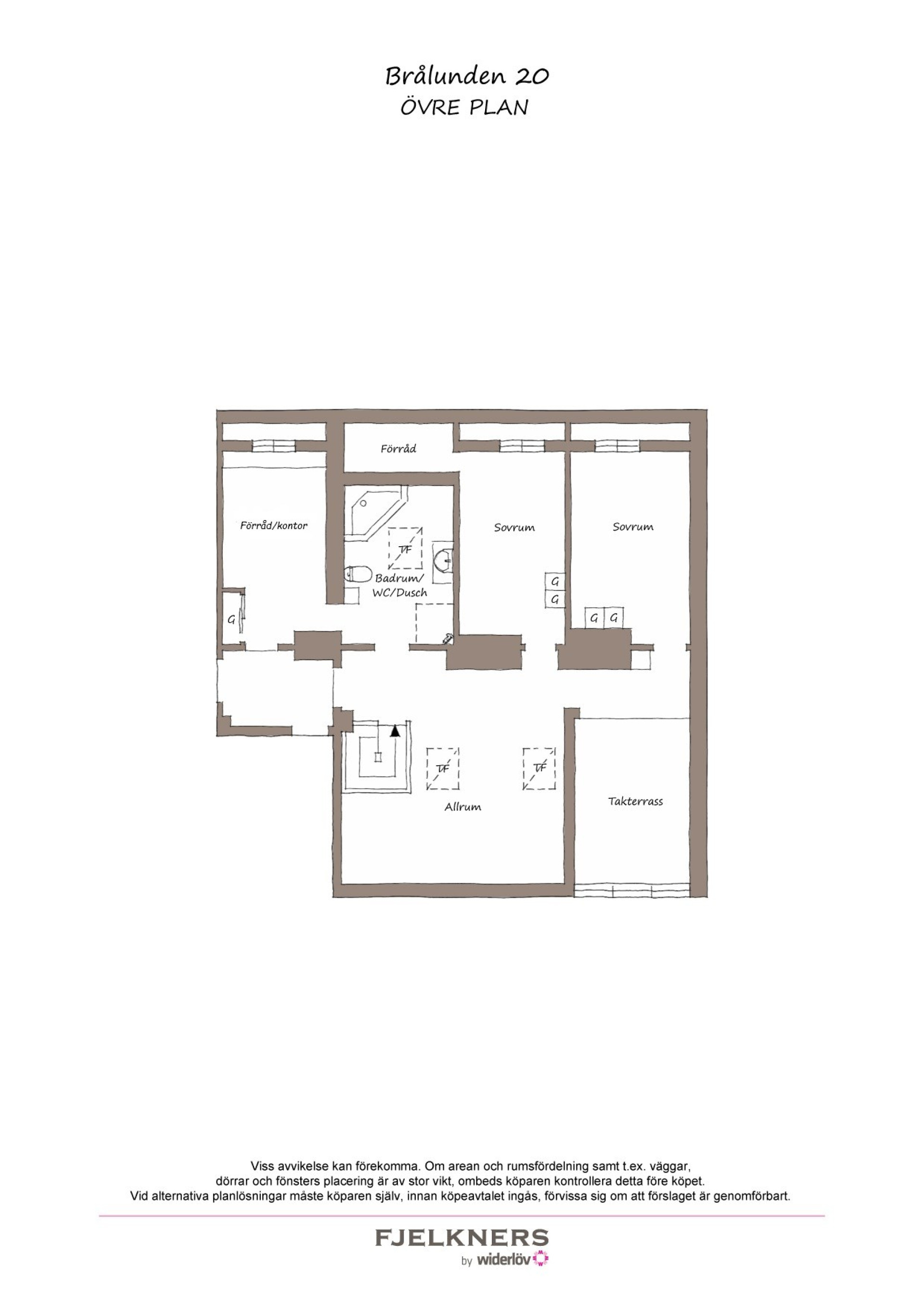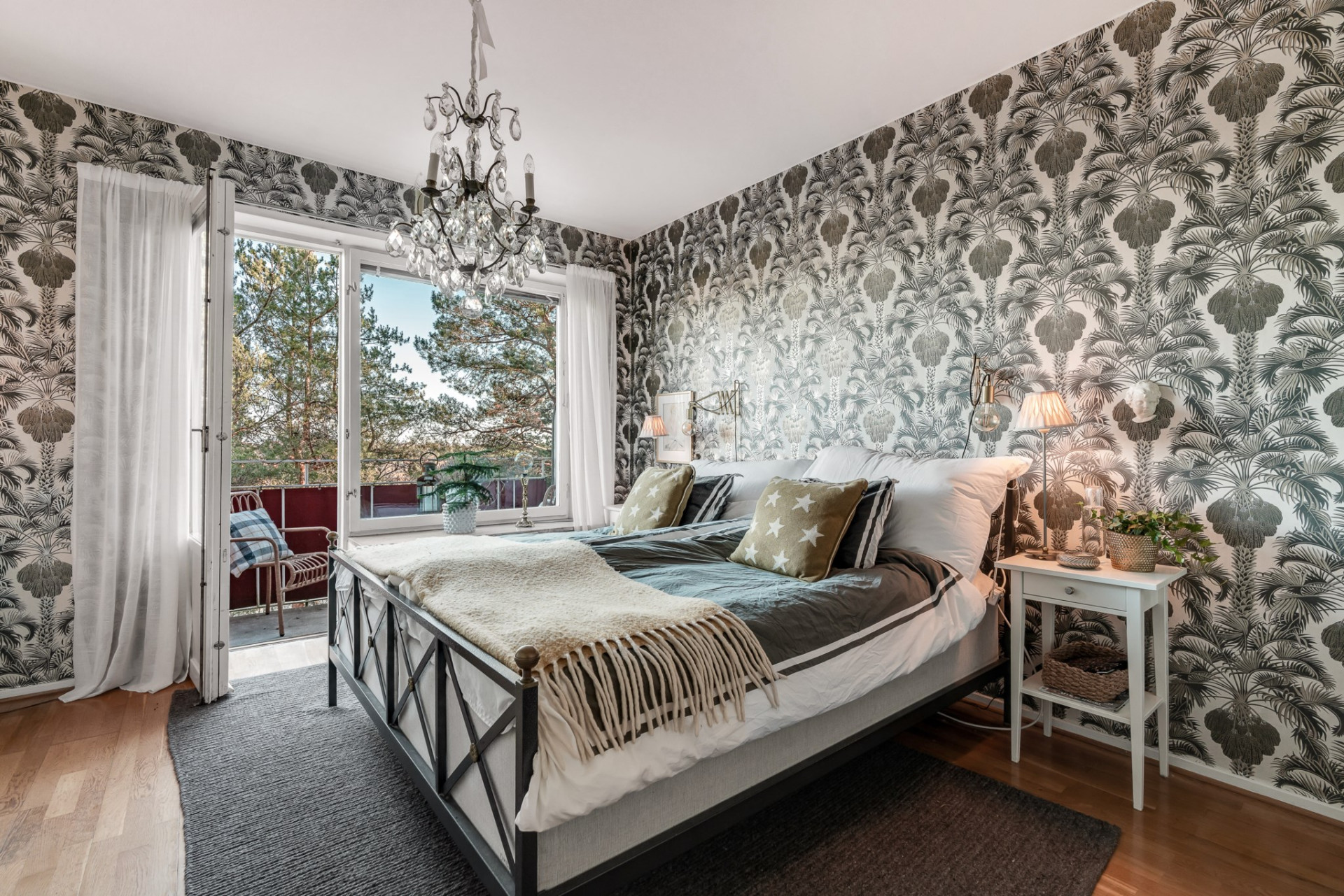 På entréplanet möts du av en ljus och välkomnande hall med gott om plats för avhängning. Här finns även en gäst-wc. Vardagsrum och matsal ligger i öppen planlösning och bjuder på en varm atmosfär med öppen spis, vacker stavlagd ekparkett i original och utgång till en av bostadens tre balkonger – denna med kvällssol och utsikt över Brålundens grönska. Köket är rymligt och ljust med dubbla fönster med markiser, köksö, vitrinskåp samt gott om förvaring och arbetsytor. Master bedroom har egen balkong i österläge, perfekt för morgonkaffet, och intill ligger ett duschrum där tvättmaskin får plats. I korridoren finns dessutom fem stora garderober som säkerställer utmärkt förvaring.