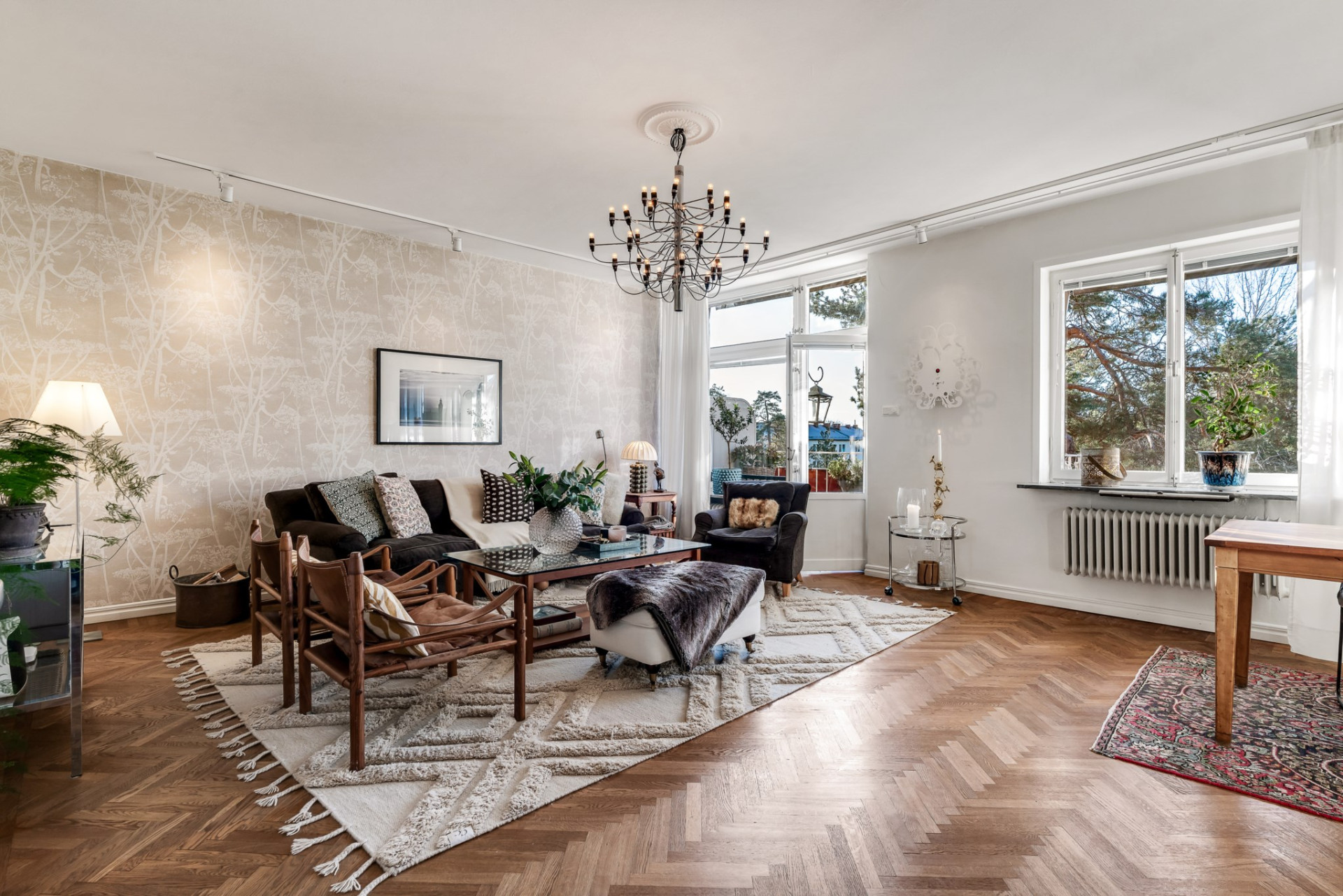 Välkommen till en rymlig och stilfull etagevåning om 5 rok och totalt 146 kvm – 135 kvm boarea samt ett ombyggt förråd om 11 kvm – vackert belägen vid Brålundens lummiga grönska. Här bor du i en idylliskt lugn miljö nära Nockeby Torg, med milsvid utsikt och naturen precis utanför.