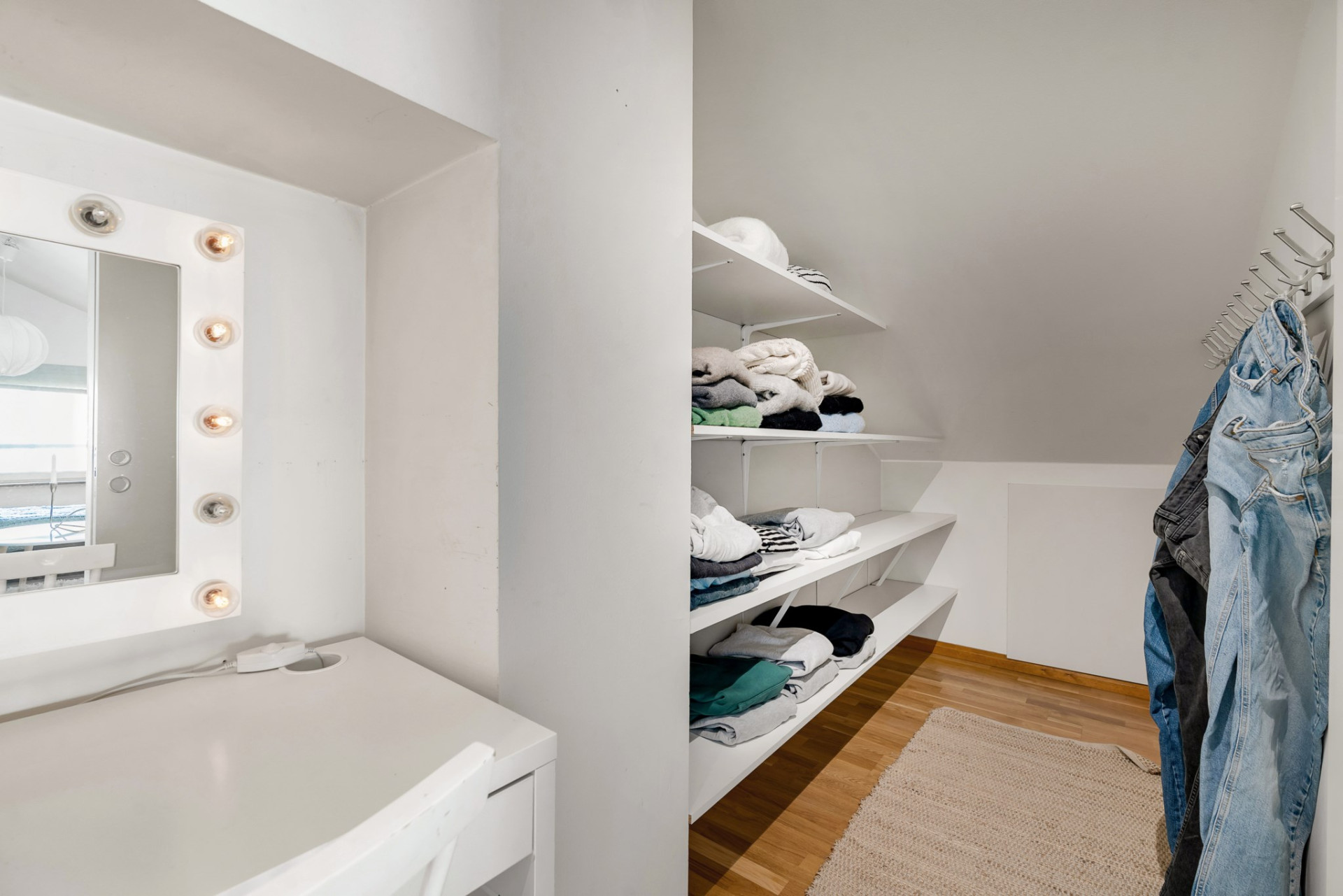 Via ektrappan nås vindsvåningen som rymmer ett stort rum som med fördel kan användas till "master bedroom" eller varför inte som tonårshäng. För den som behöver ytterligare sovrum går rummet att dela. Här finns även en stor klädkammare samt gott om förvaring i garderober bakom skjutdörrar.