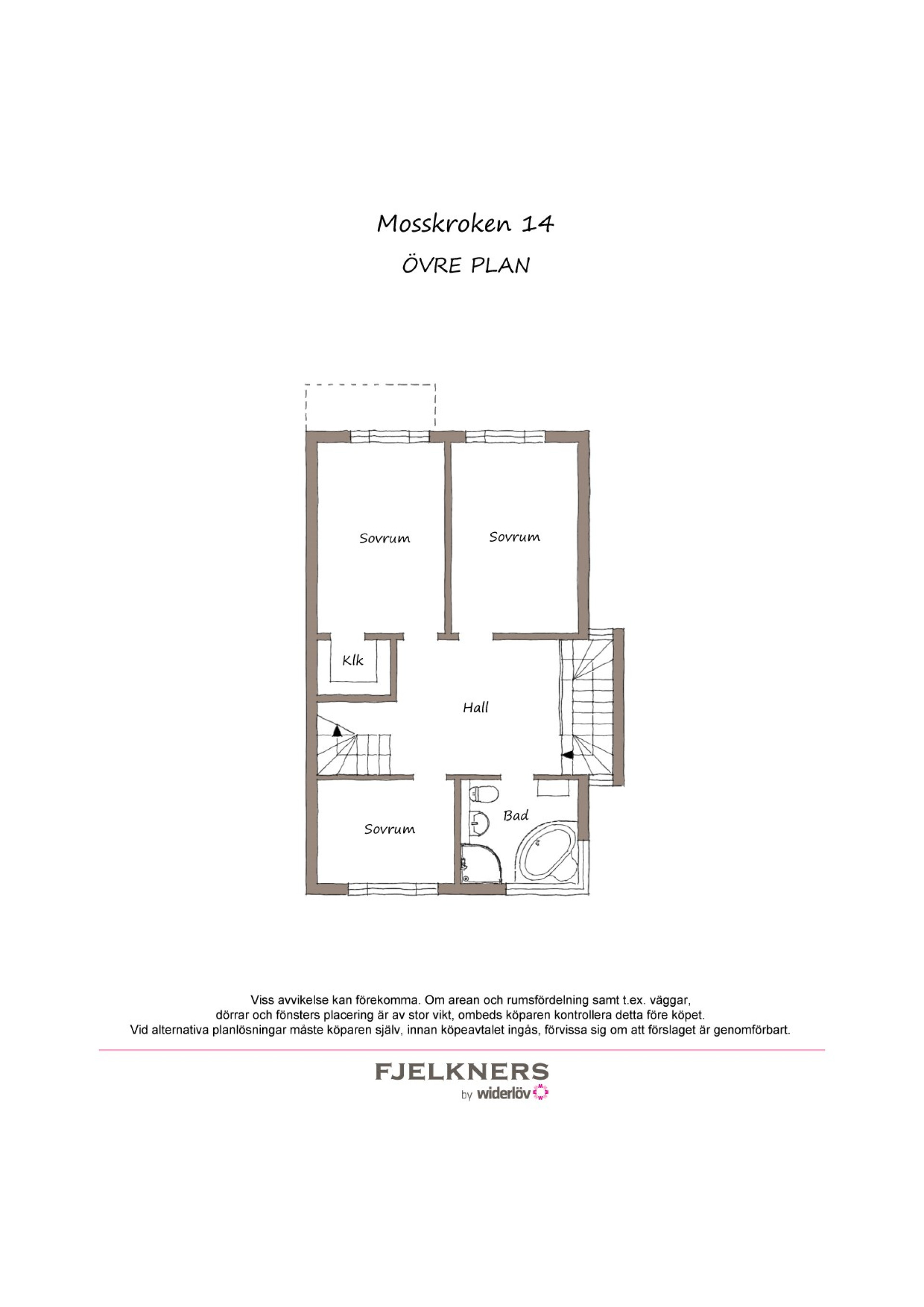 På över plan finns det tre sovrum varav ett naturligt kan användas som "master bedroom". Ett av sovrummen har egen klädkammare.