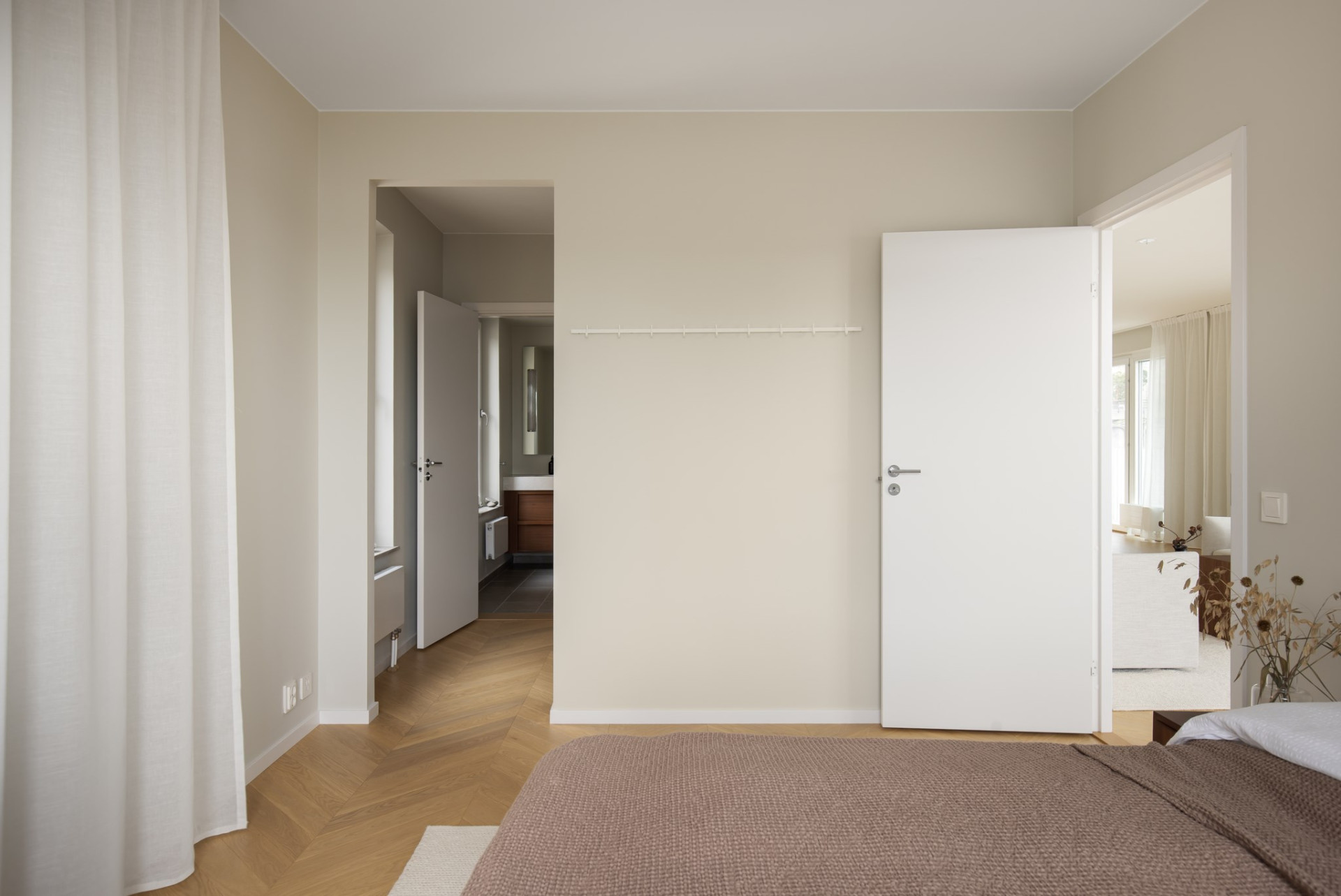 Sovrummen är lugna och rogivande, inredda med naturliga material och generösa förvaringslösningar. I det största sovrummet väntar en privat oas med sjöutsikt, walk-in closet och badrum en suite – en lyxig tillflyktsort för avkoppling och återhämtning.