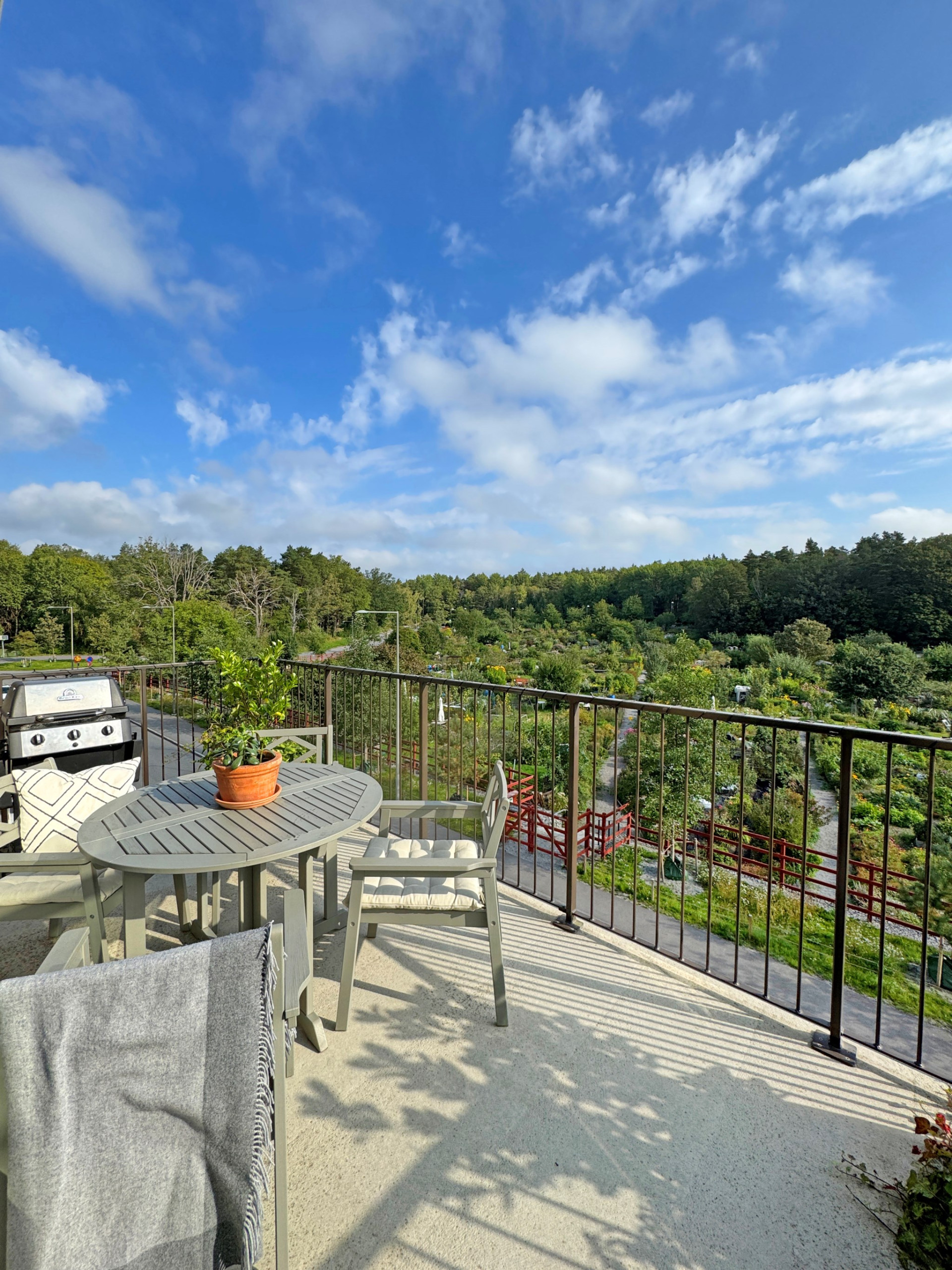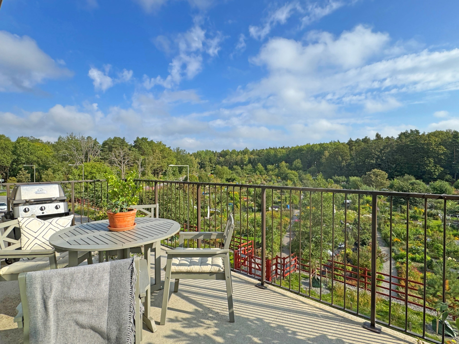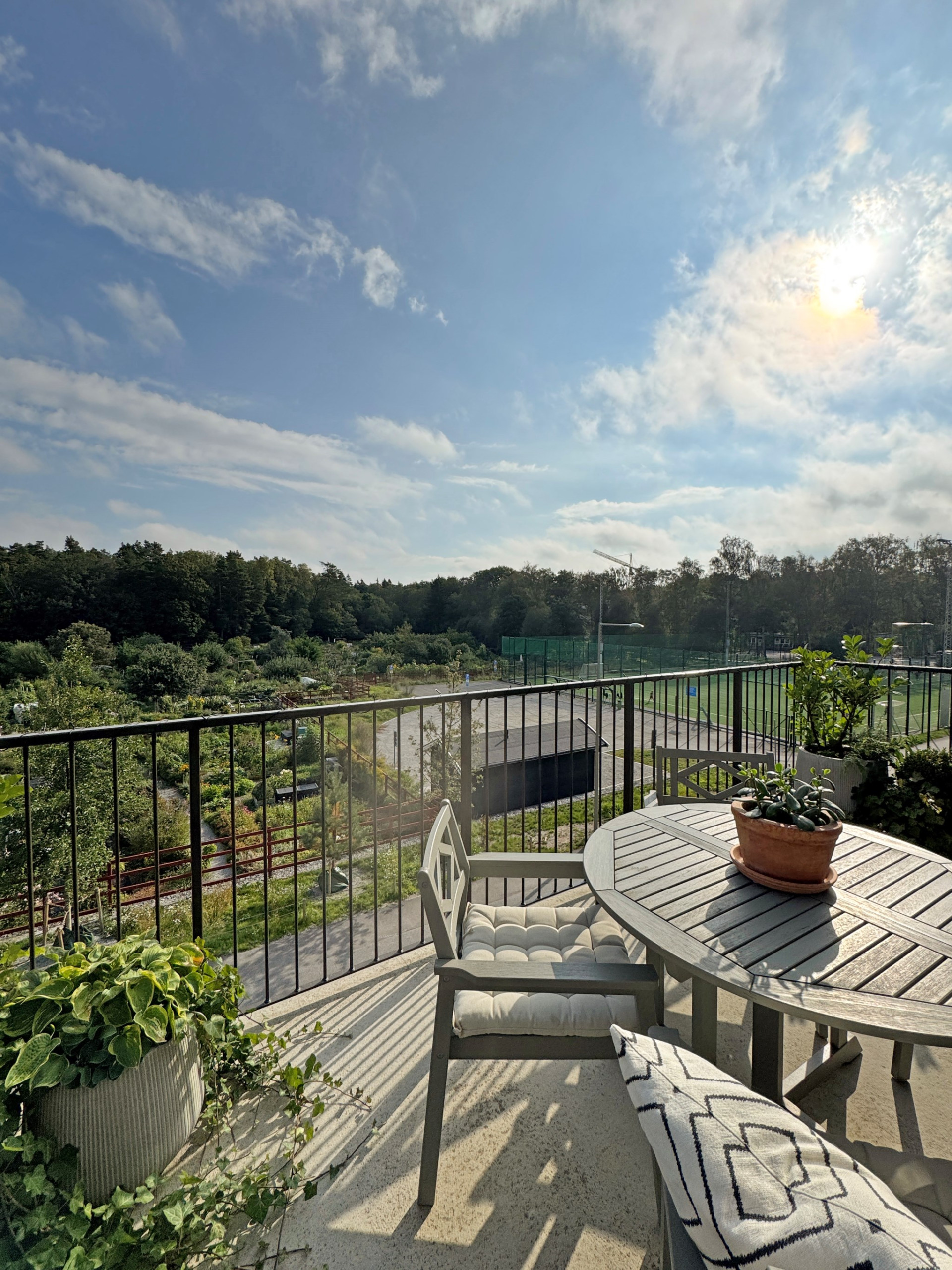 Unik och påkostad våning om 118 kvm i naturnära och trivsamma Nockebyhov. En rymlig 5 rok med hela fyra sovrum och två stilrena badrum. Här bor ni på våning 3 av 5 med en fantastisk balkong som vetter mot de charmiga kolonilotterna och bjuder på en grön och rofylld utsikt. Balkongen är utrustad med eldriven markis för extra komfort. Bostaden rymmer även en andra balkong som skapar extra utrymme för avkoppling utomhus.