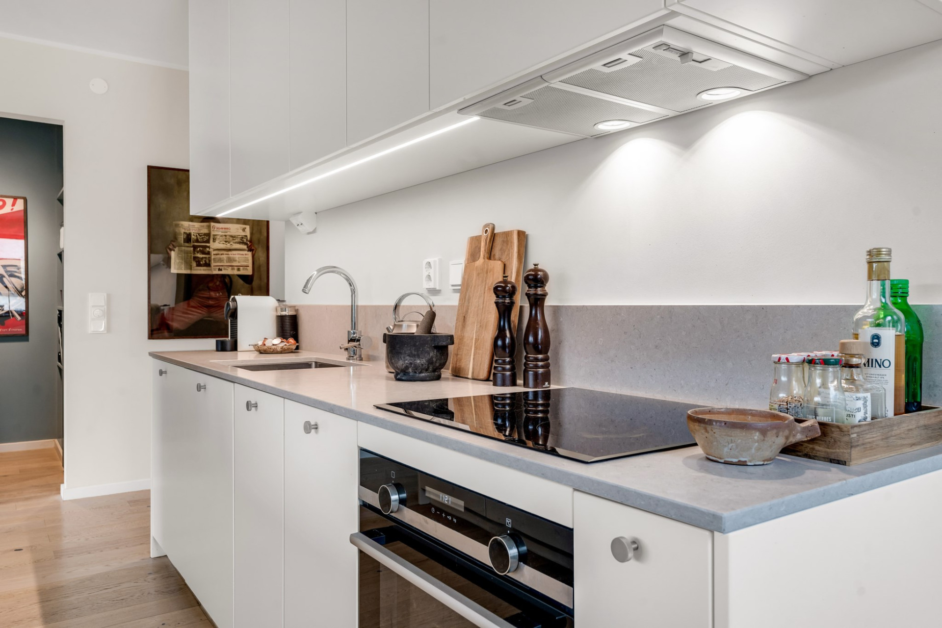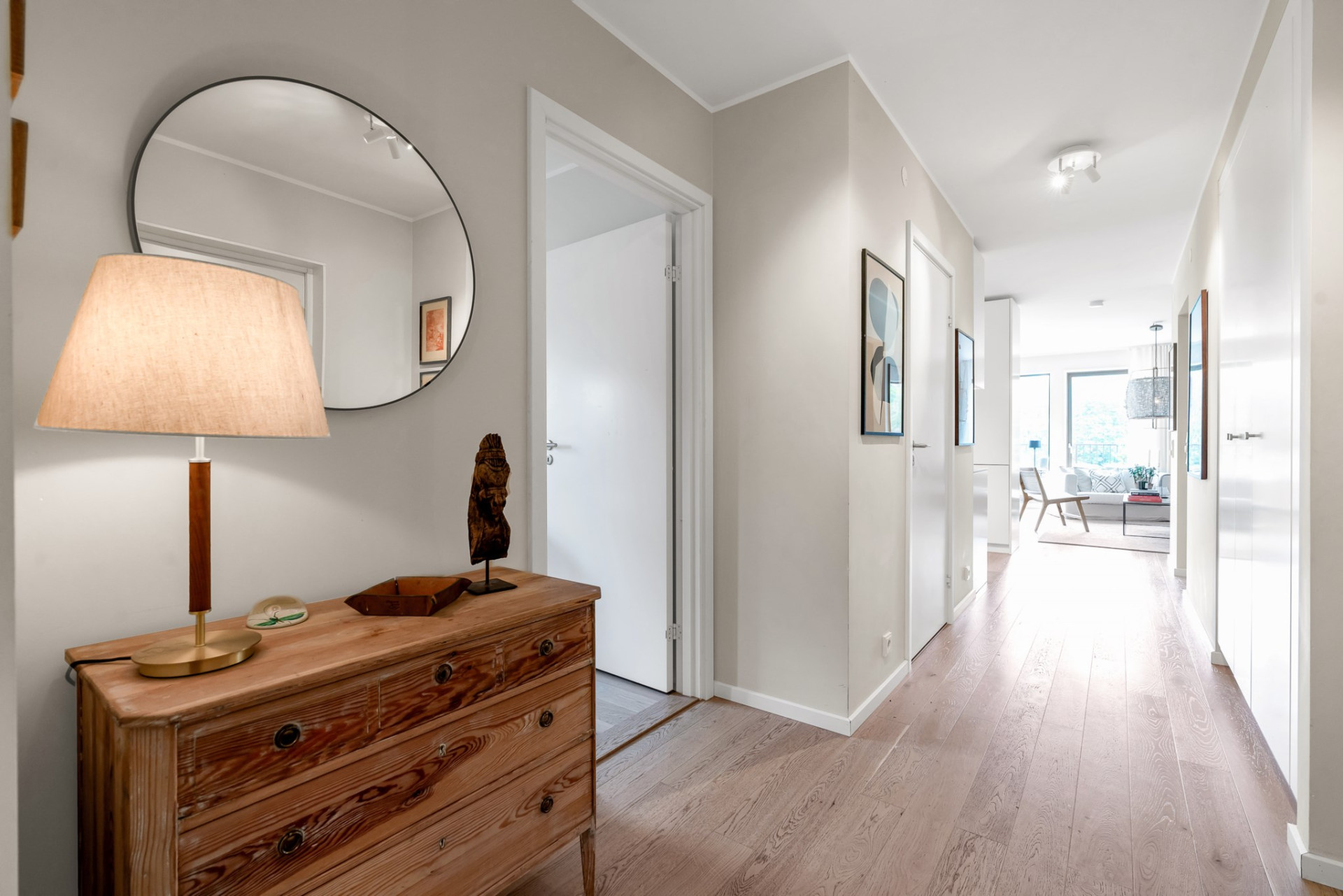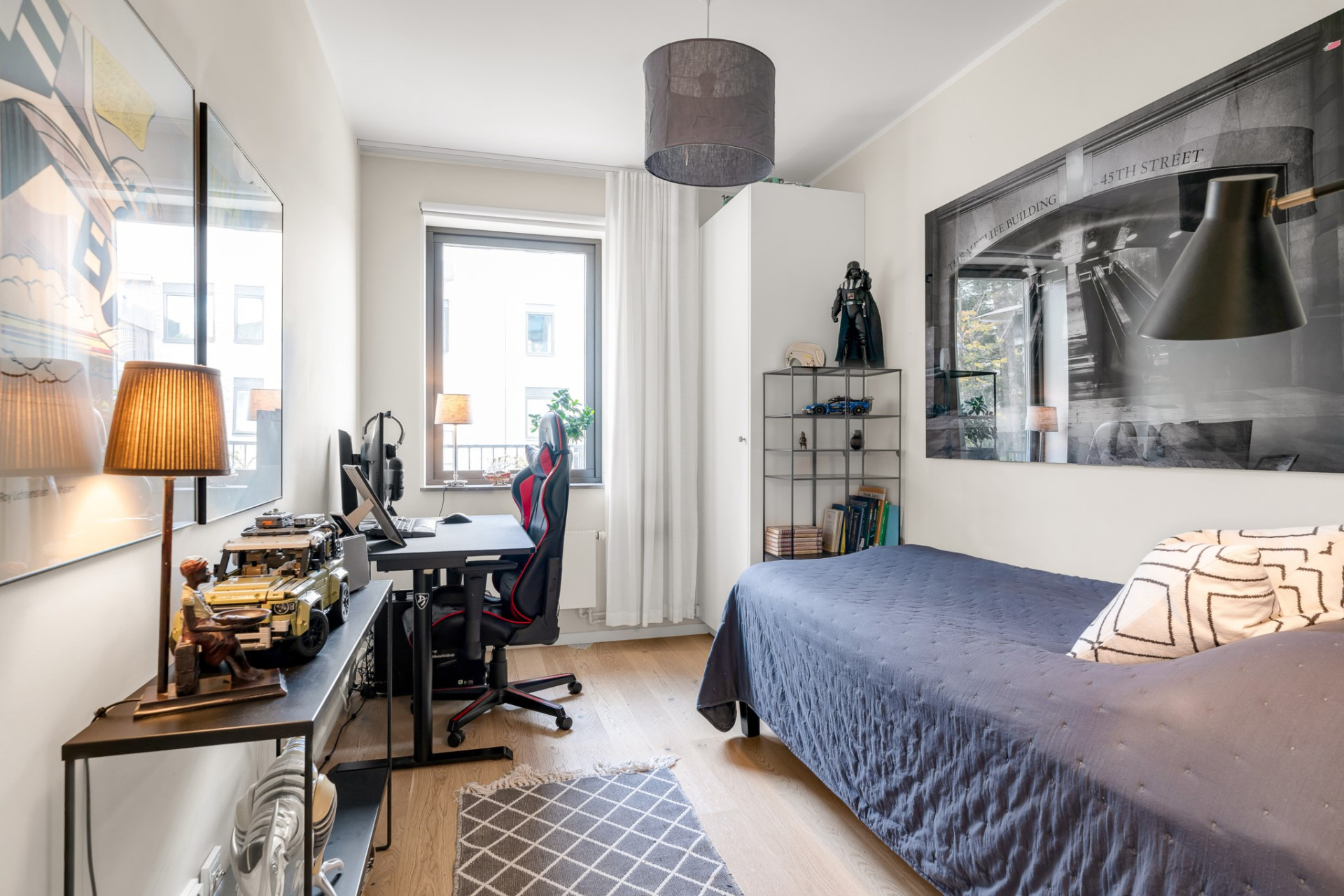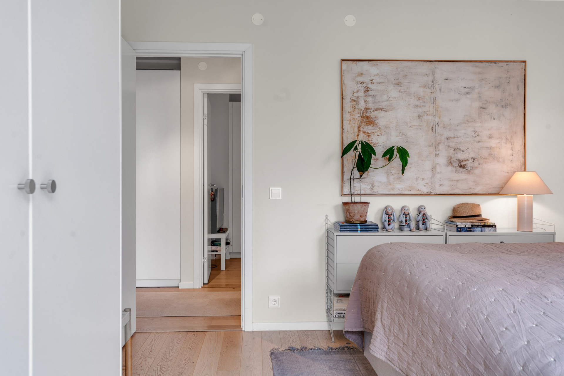 Bostaden präglas av en social och luftig planlösning där det smakfulla och praktiska köket möter ett generöst vardagsrum och matsalsdel. De stora fönsterpartierna ger ett fantastiskt ljusflöde som fyller hela våningen. Sovrummen är välplanerade och erbjuder gott om plats för både förvaring och möblering, och de två badrummen – ett större badrum samt ett mindre duschrum – gör vardagen extra bekväm.