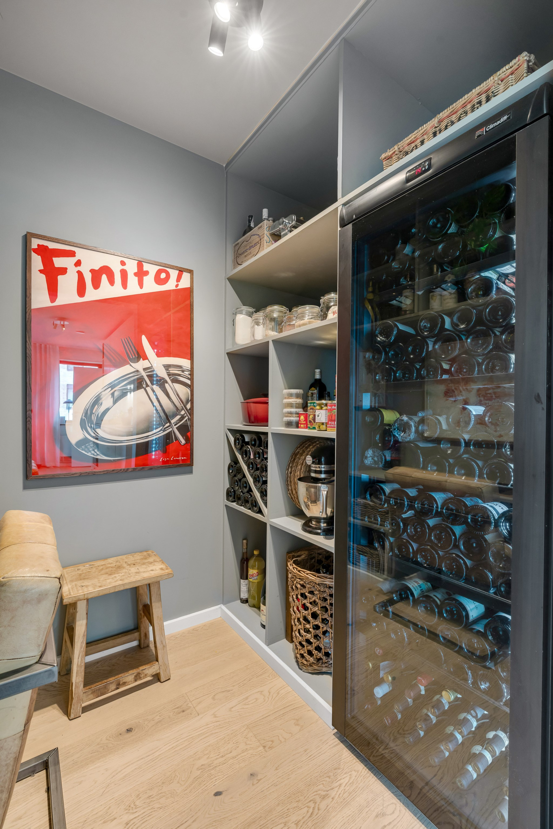 Ombyggnation av skafferi - installation av hyllor och vinkyl