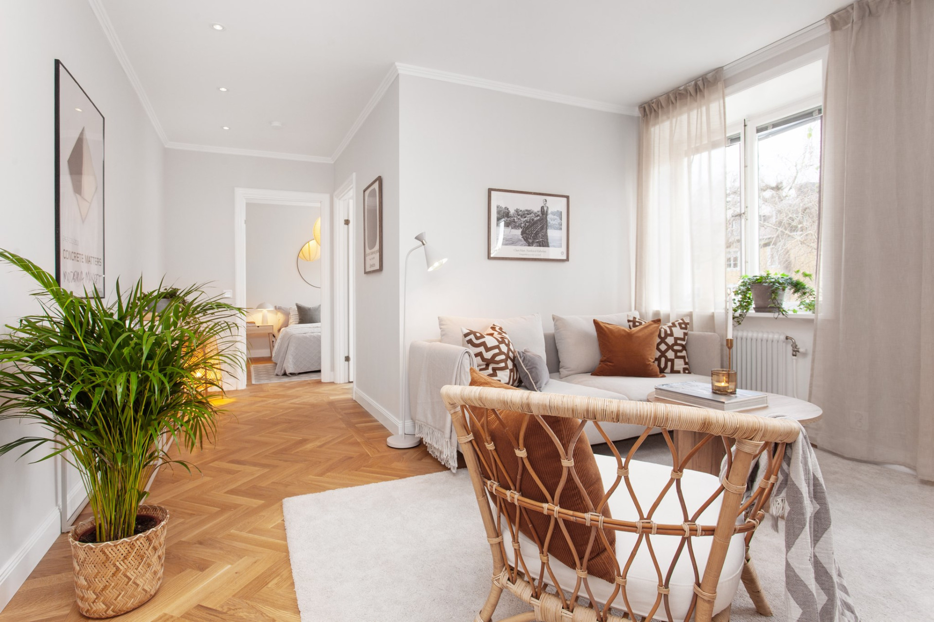Lägenheten om 54 kvm och 3 rok erbjuder en harmonisk kombination av klassisk elegans och modern komfort. De fem stora fönstren mot Ålstensgatan skapar ett fantastiskt ljusinsläpp och ger en härlig rymd åt bostaden.