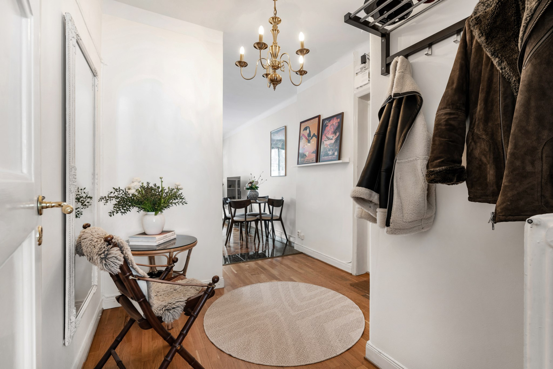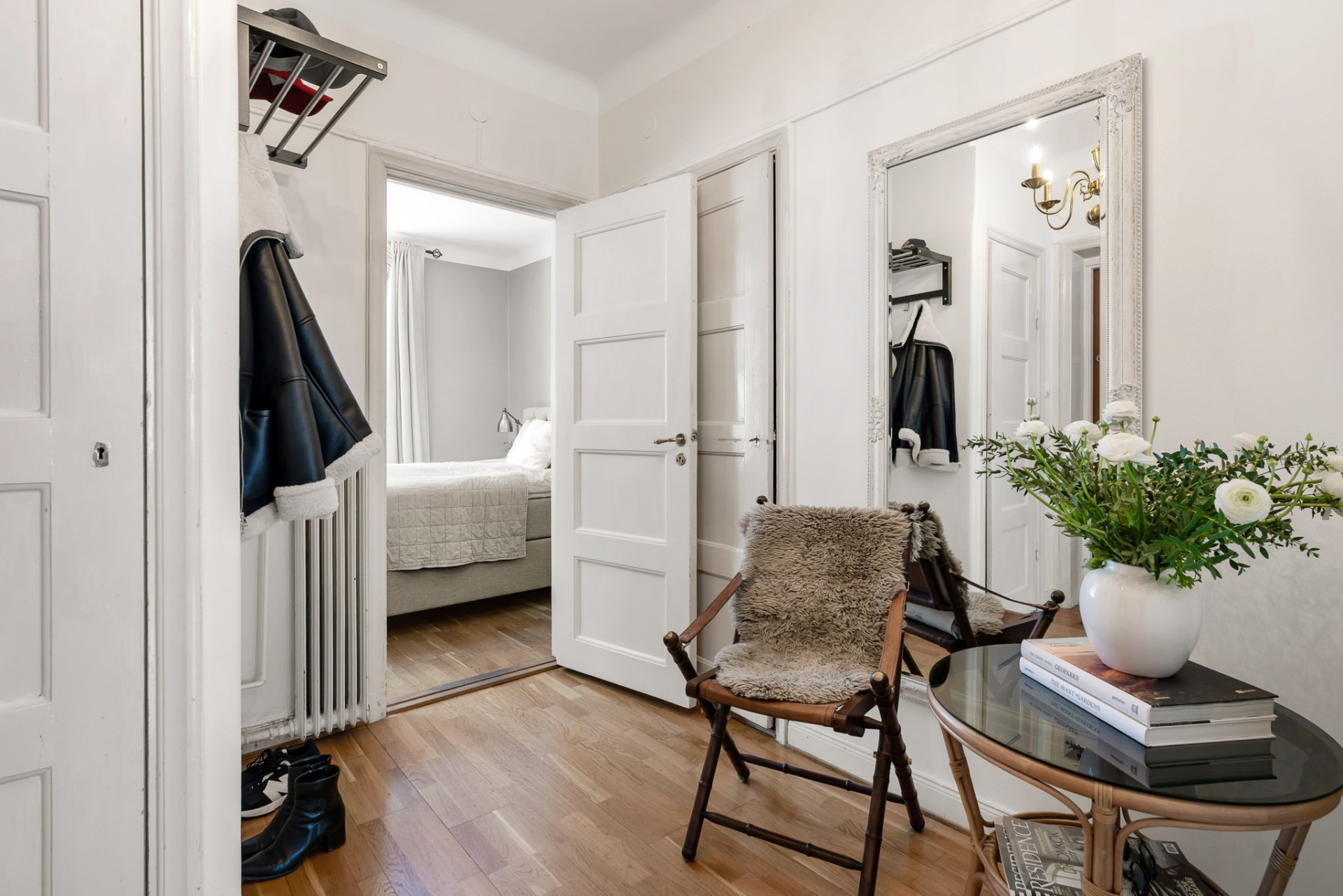 En genomgående trivsam och ljus lägenhet i gott skick. Inne i lägenheten möter en stor öppen hall, generöst sällskapsrum och kök i öppen planlösning, rymligt sovrum med garderobsvägg mot den grönskande trädgården samt ett badrum med dusch.