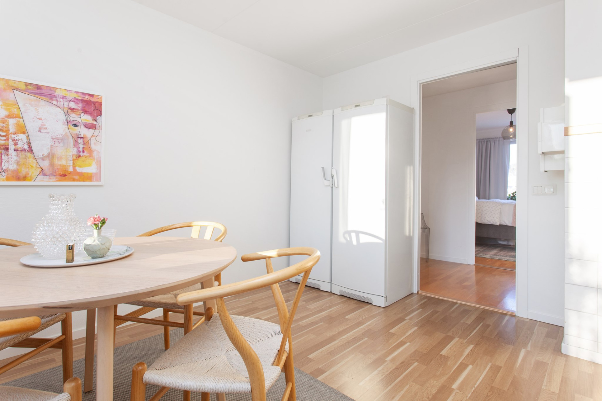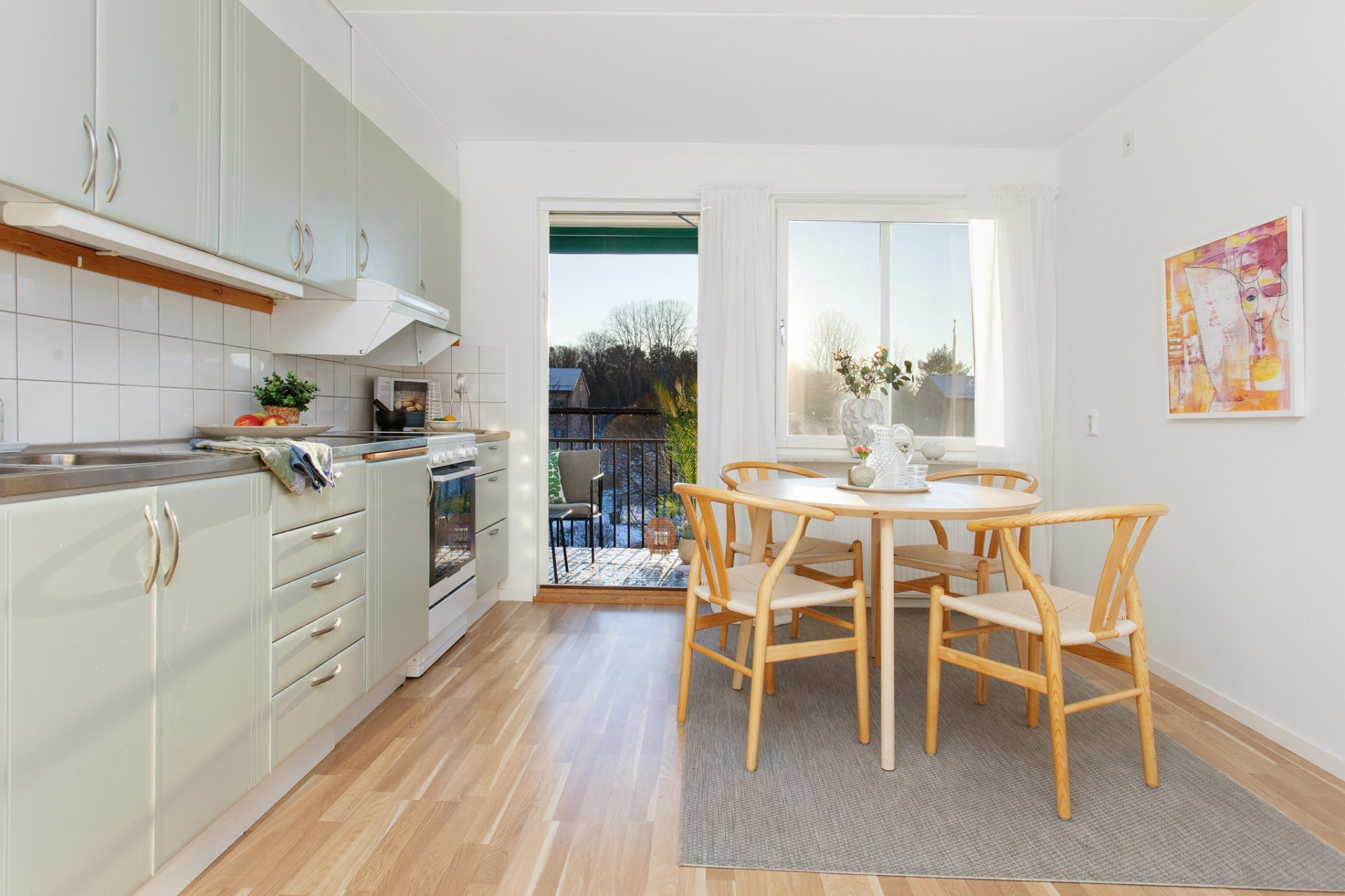 KÖKTrivsamt och välplanerat kök med fint ljusinsläpp och en härlig kontakt med balkongen mot lugn innergård. Den klassiska arbetsdelen med generösa bänkytor och gott om skåpsförvaring gör köket både praktiskt och lätt att arbeta i, samtidigt som den rymliga matplatsen vid fönstret bjuder in till såväl vardagsmiddagar som helgfrukostar. Härifrån kliver du rakt ut på balkongen – en naturlig förlängning av köket under årets varmare månader och en uppskattad plats för morgonkaffet eller en stund i kvällssolen. Ett kök som kombinerar funktion, rymd och ett lugnt gårdsläge på bästa sätt.