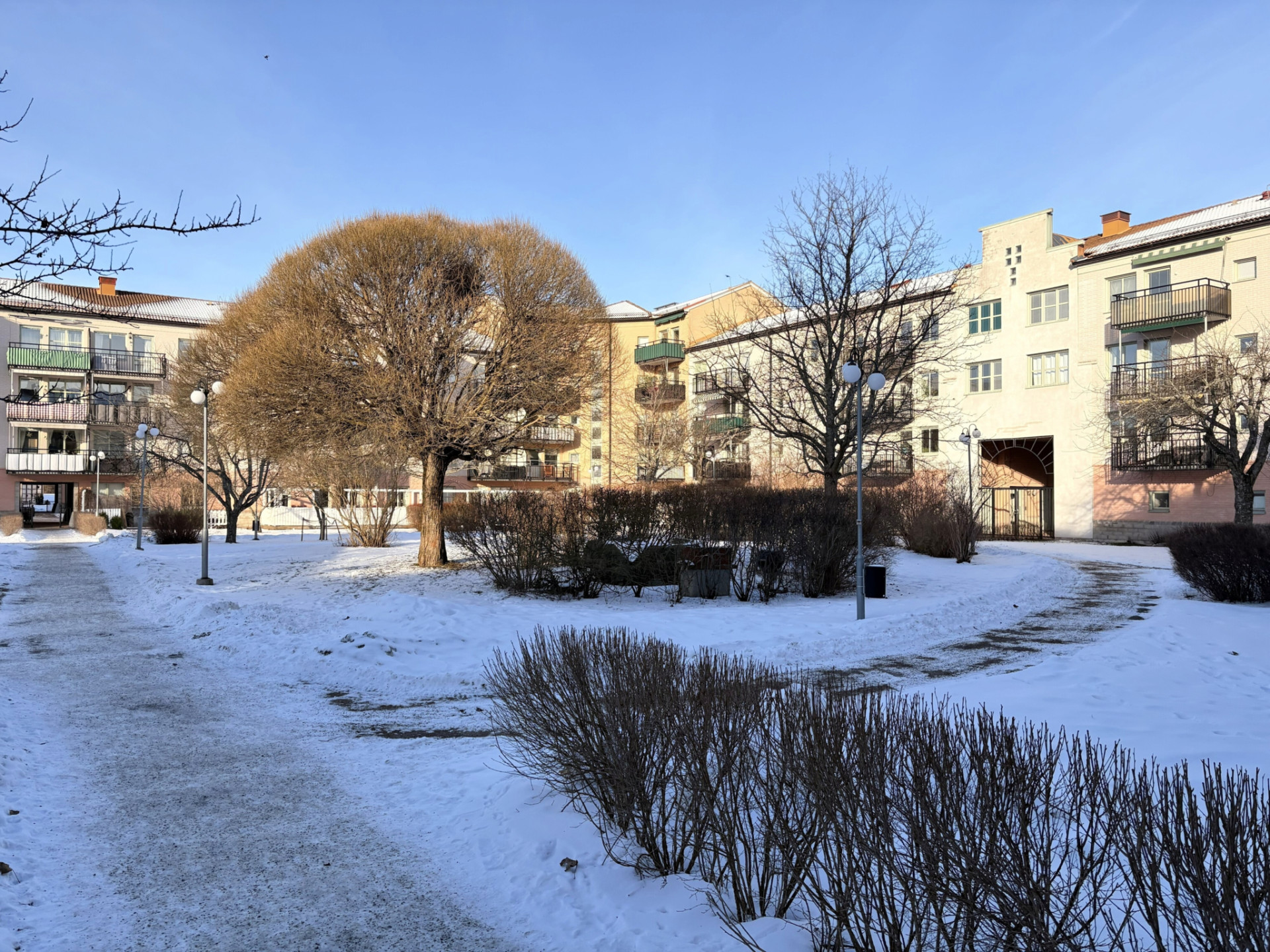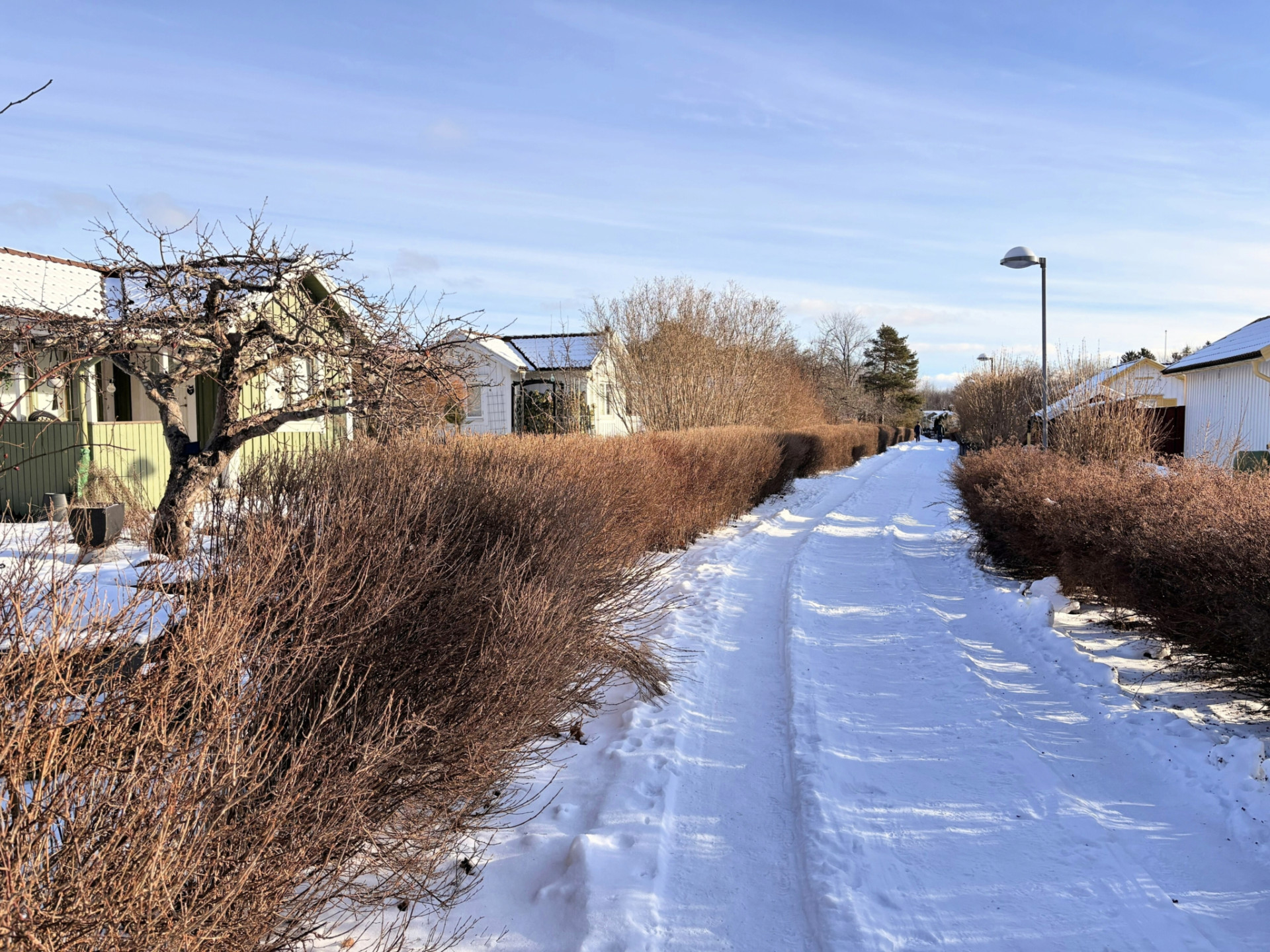 Området bjuder på härliga promenadstråk med närhet till både kolonilotter, skogspartier och grönområden – lätt att ta en morgonpromenad, en löptur eller en spontan picknick när vädret tillåter. Samtidigt är det nära till matbutiker och restauranger, vilket gör vardagen enkel och bekväm.