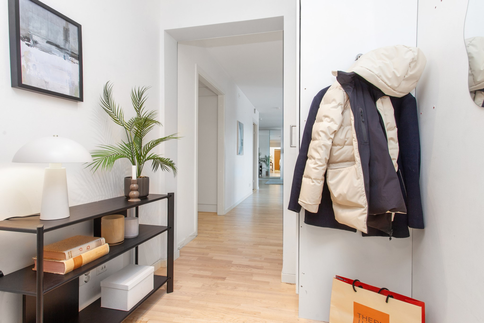 HallLjus och välkomnande hall med gott om plats för avhängning och förvaringsmöjligheter.