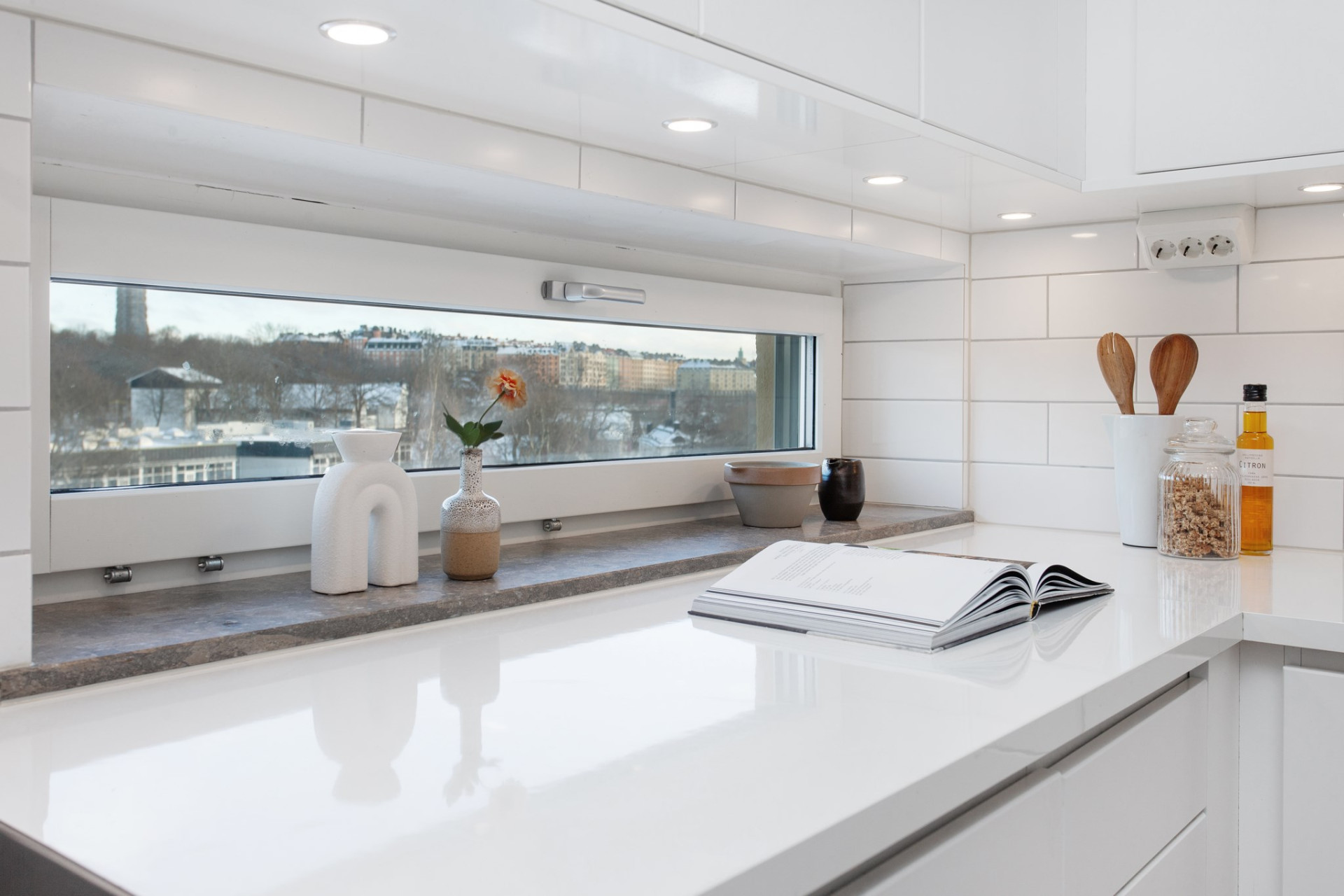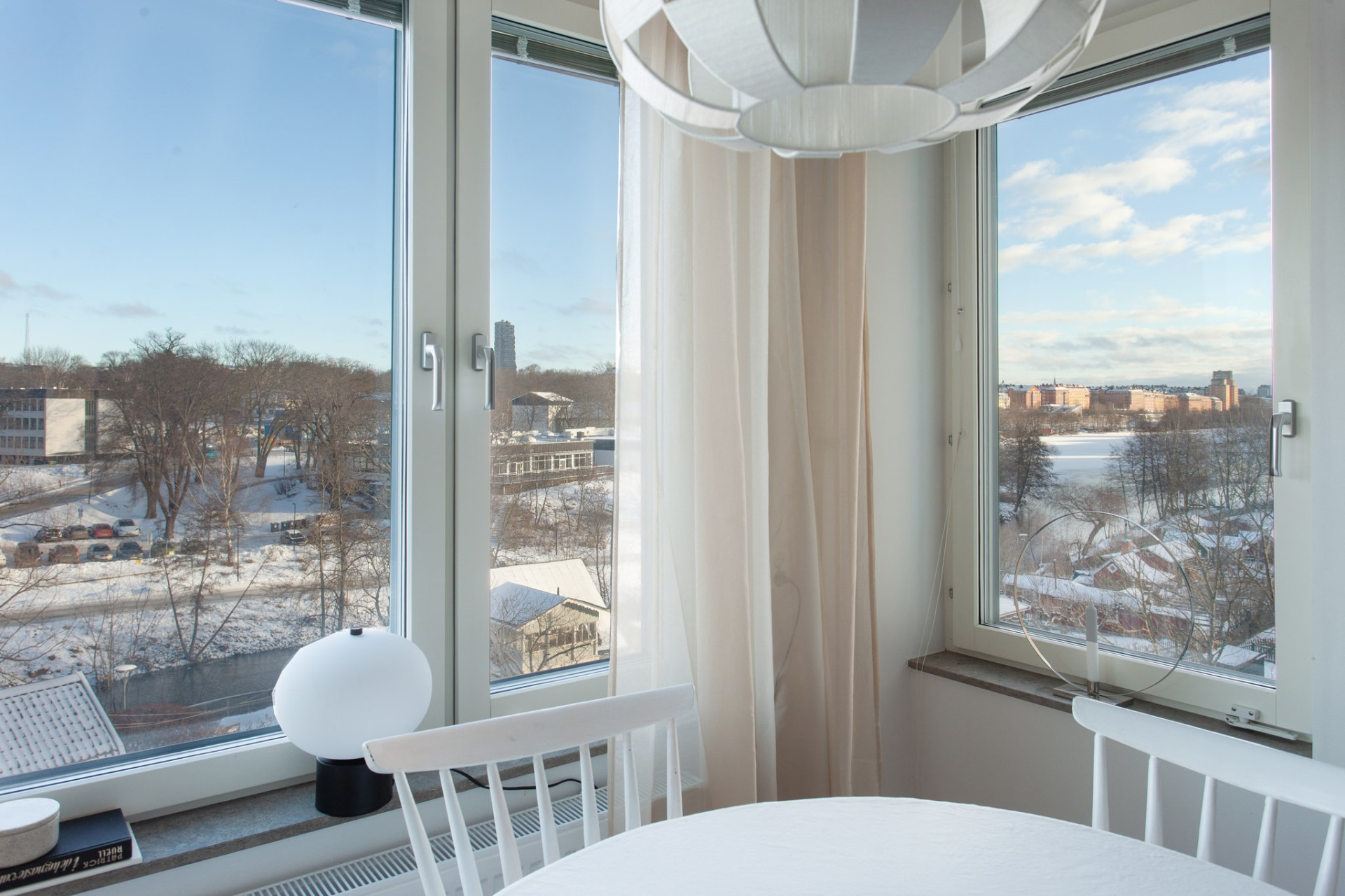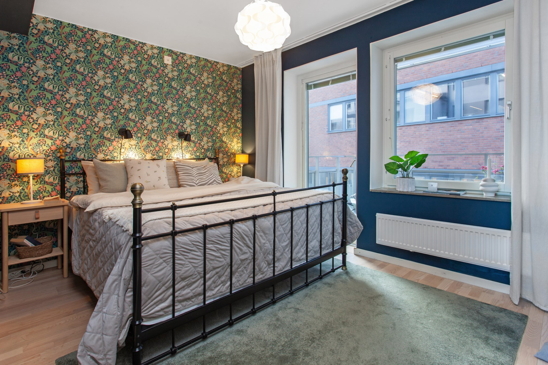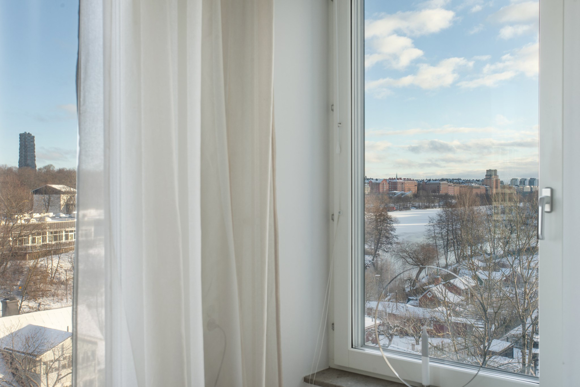 Ytterst välplanerad trea möjlig fyra med två balkonger och med absolut toppläge på Kungsholmen. En fantastisk utsikt mot Karlbergskanalen och de pittoreska kolonilotterna och dess grönska. Genomgående lägenhet med både stora fönsterpartier och balkonger i två väderstreck som ger rikligt med ljusinsläpp. Stor balkong med utsikt mot Karlbergskanalen och den andra balkong vetter mot föreningens innergård. Samtliga sovrum är belägna mot innergården med lugnt läge. Social och öppen planlösning mellan kök och vardagsrum. Stilfullt kök och badrum från 2016 när huset byggdes. Köket är rymligt och har gott om förvaring i form av över och underskåp samt generöst med arbetsyta. Plats också för större matbord och soffgrupp eller annat önskvärt möblemang. Två rymliga sovrum med plats för säng, skrivbord och förvaring. Finns även möjlighet att dela av ett av sovrummen till två mindre.