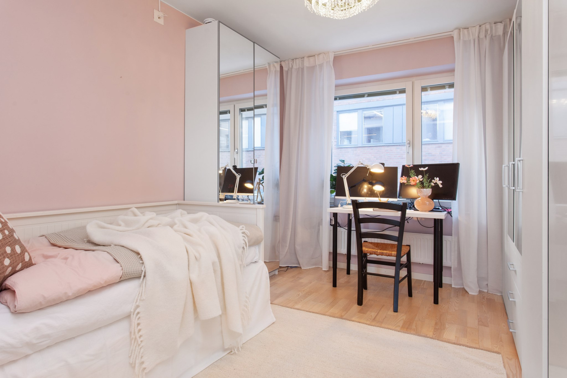 SovrumMaster bedroom med plats för dubbelsäng, skrivbord och förvaring. Sovrummet är beläget mot föreningens lugna innergård. Från sovrummet nås en av balkongerna som är belägen mot föreningens innergård.