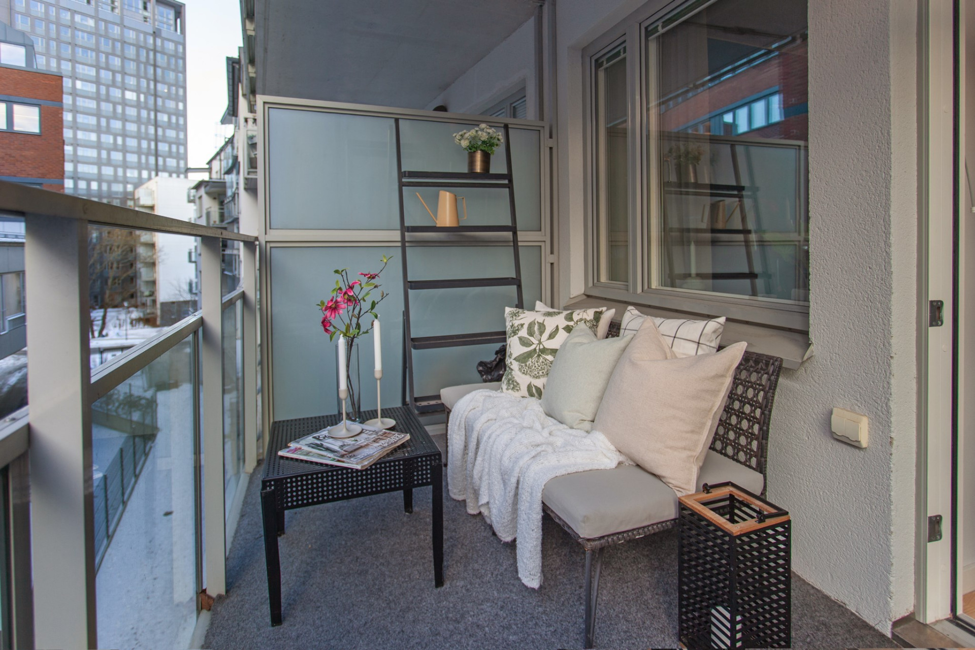 Balkong mot InnergårdBalkong nås från sovrummet och är beläget mot föreningens lugna innergård. Plats för utemöbler, växter eller annan möblemang.