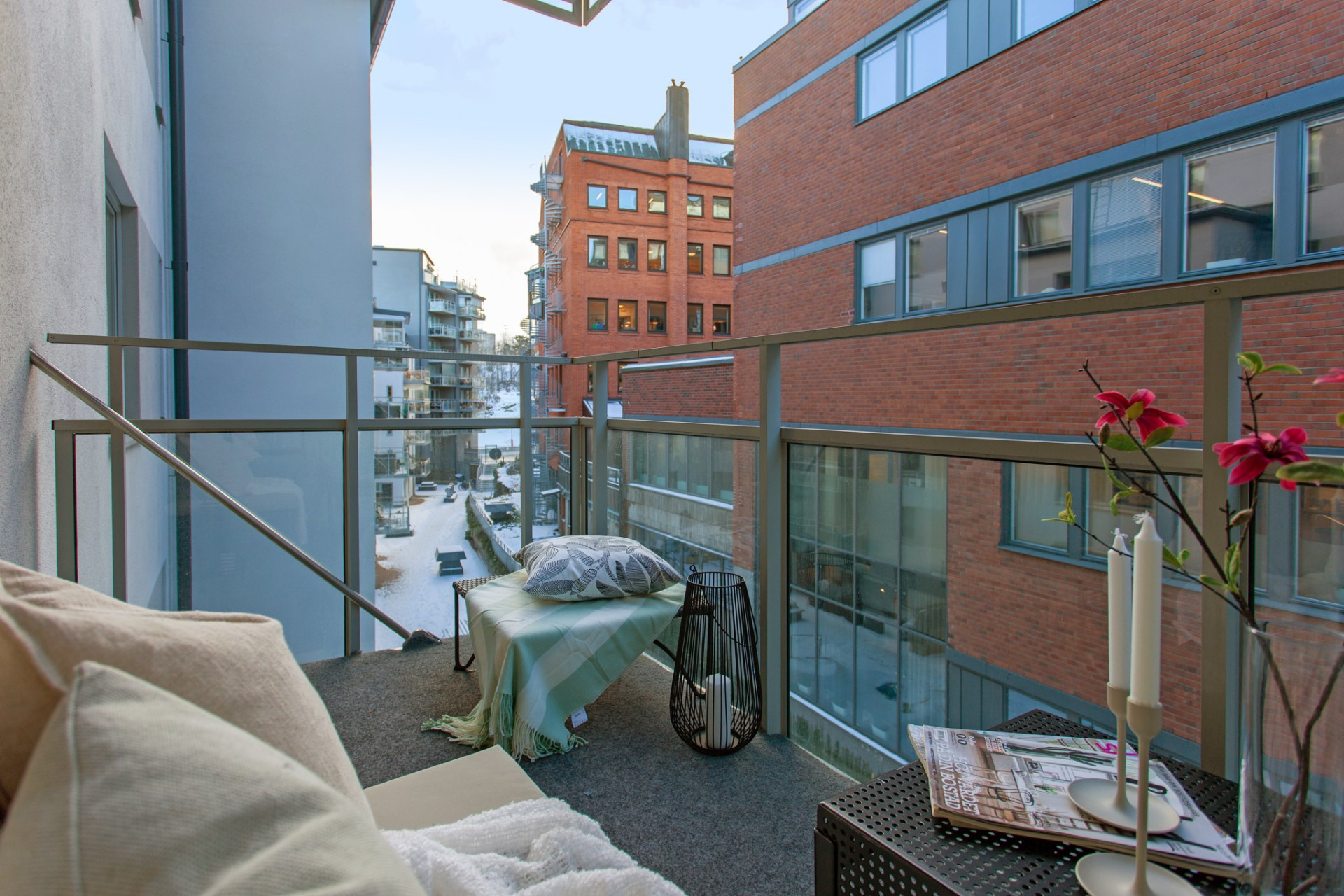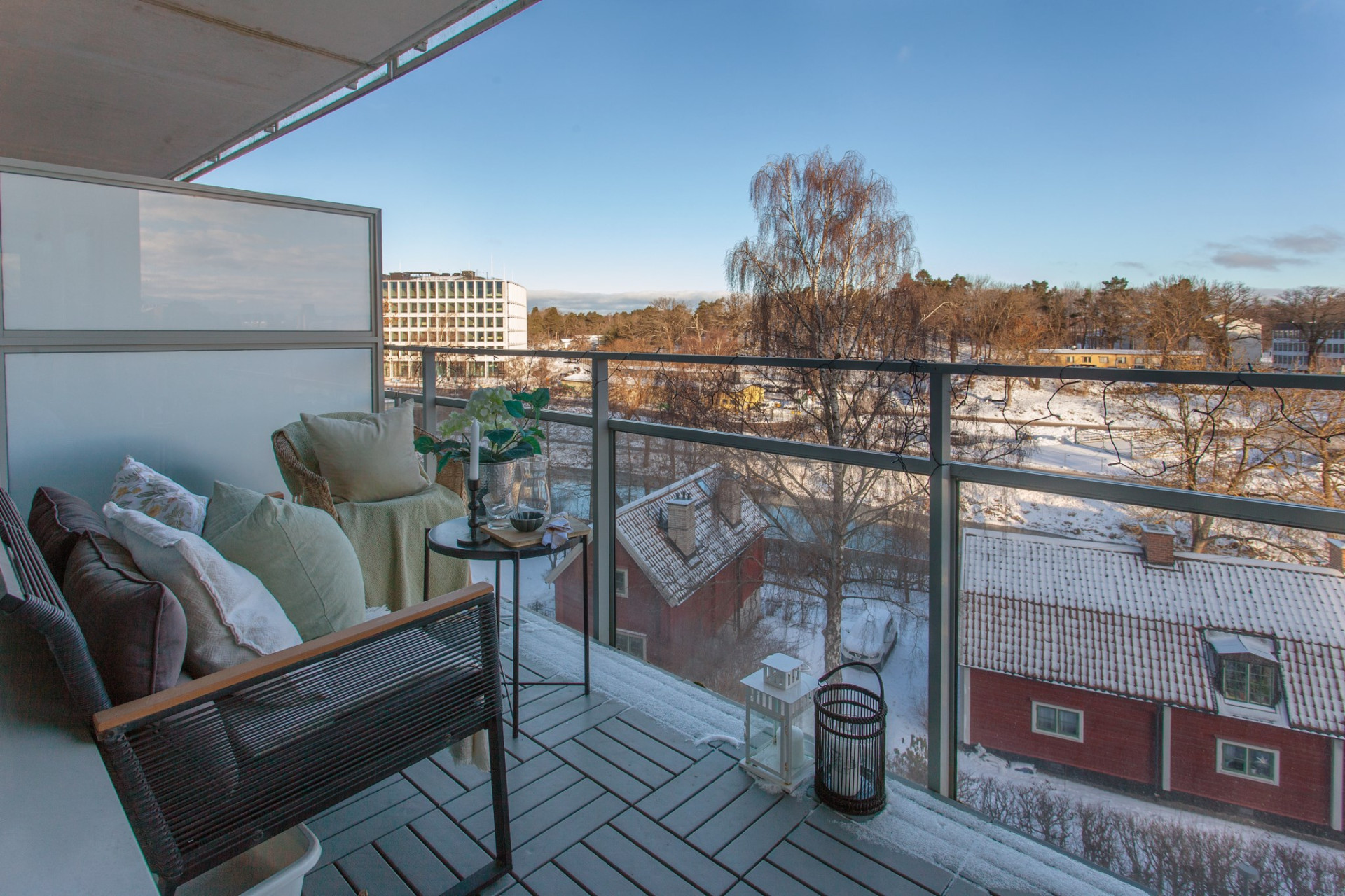 Balkong mot KarlbergskanalenStor balkong med fantastisk utsikt mot Karlbergskanalen med fritt och insynsskyddat läge. Plats för utemöbler, växter eller annan önskvärd möblemang. Balkongen nås från vardagsrummet.