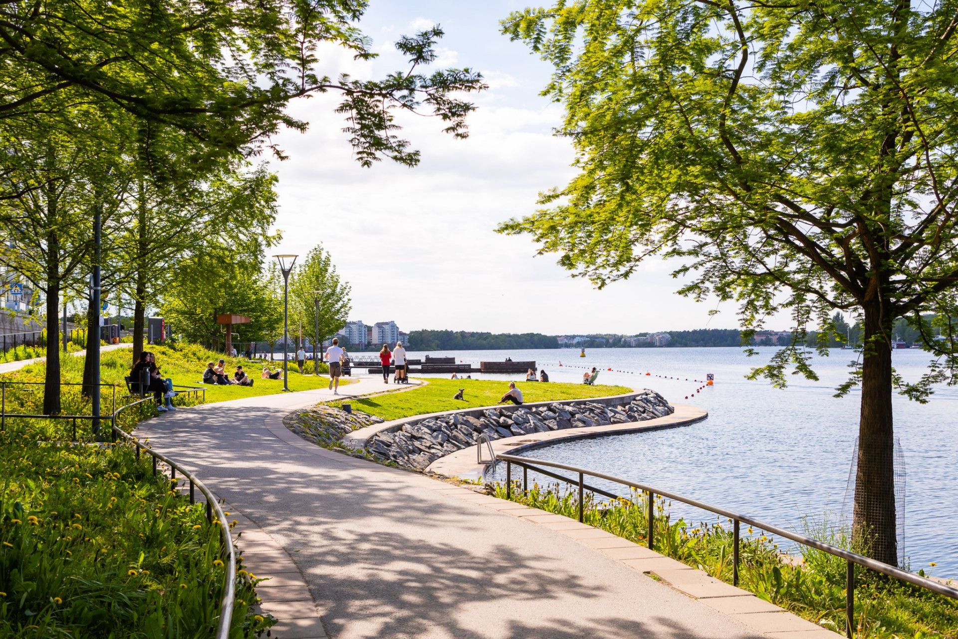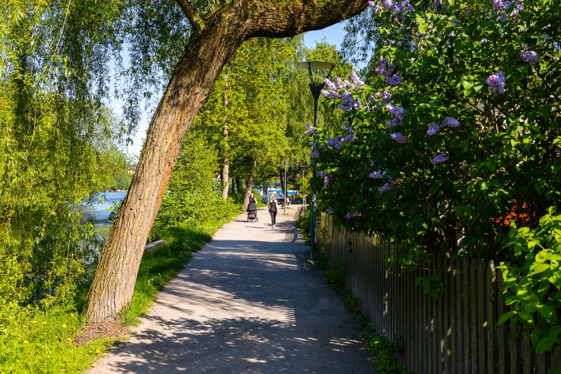 Här har man närhet till natur med härliga promenad - och löparstråk utmed strandpromenaden. Sommartid kryllar området av människor i alla åldrar som solar och badar. I närområdet finns badklippor, bryggor för sol och bad samt flera lekparker. Är du sugen på en längre promenad kan du gå runt hela ön - här är det fritt fram att hitta sin egen favoritplats!