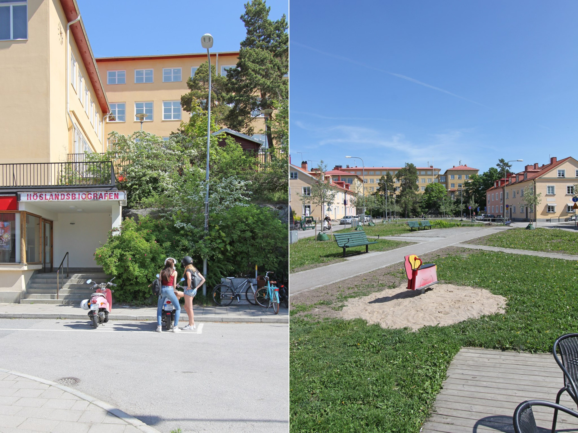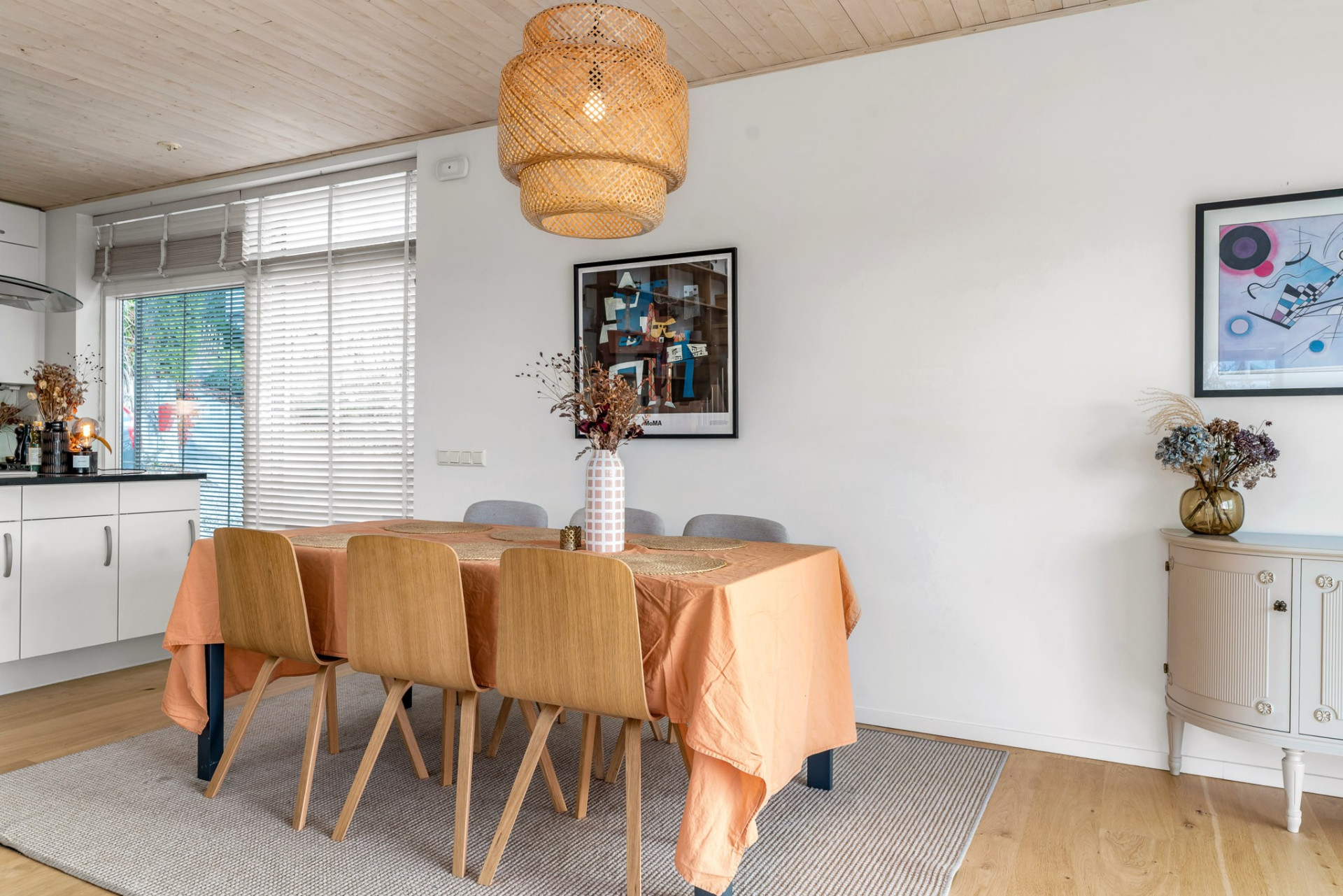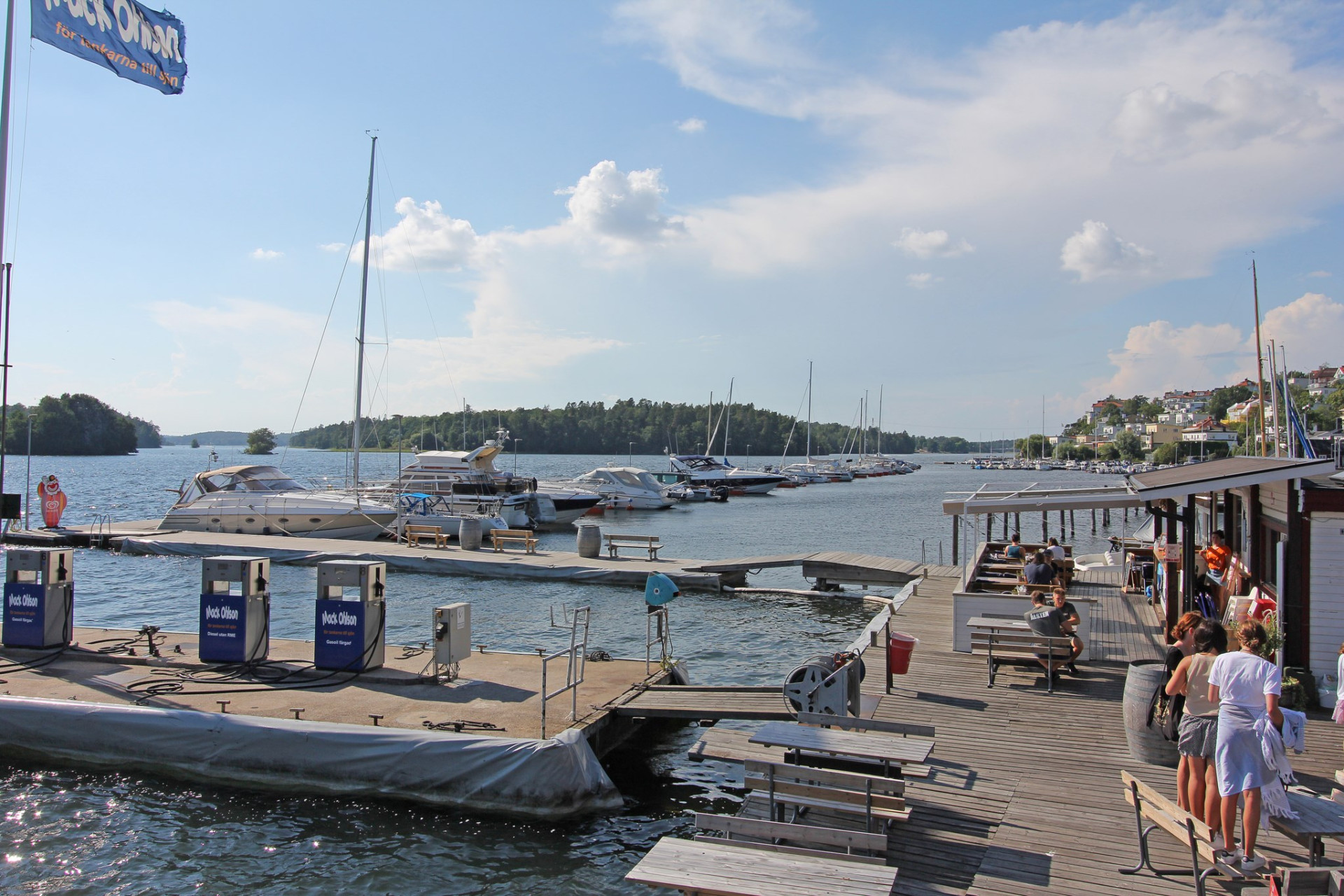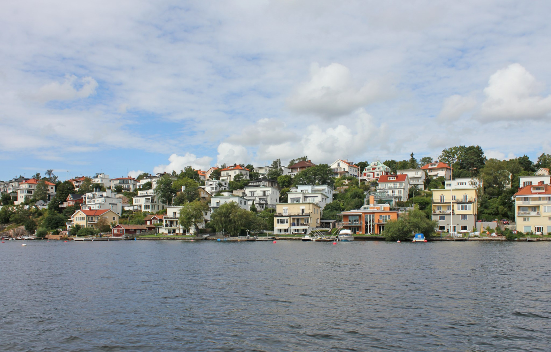 Hallen öppnar upp mot den ljusa och luftiga sällskapsavdelningen, med plats för både soffgrupper och stort matbord vid matplatsen som ligger i öppen planlösning med köksavdelningen. De tre helglasade skjutdörrspartierna leder ut till den längsgående balkongen i söder, med utsikt över Mälaren och med sol från morgon till kväll. Här finns också en värmande kamin, som kan avnjutas från både vardagsrumsdelen och matplatsdelen.