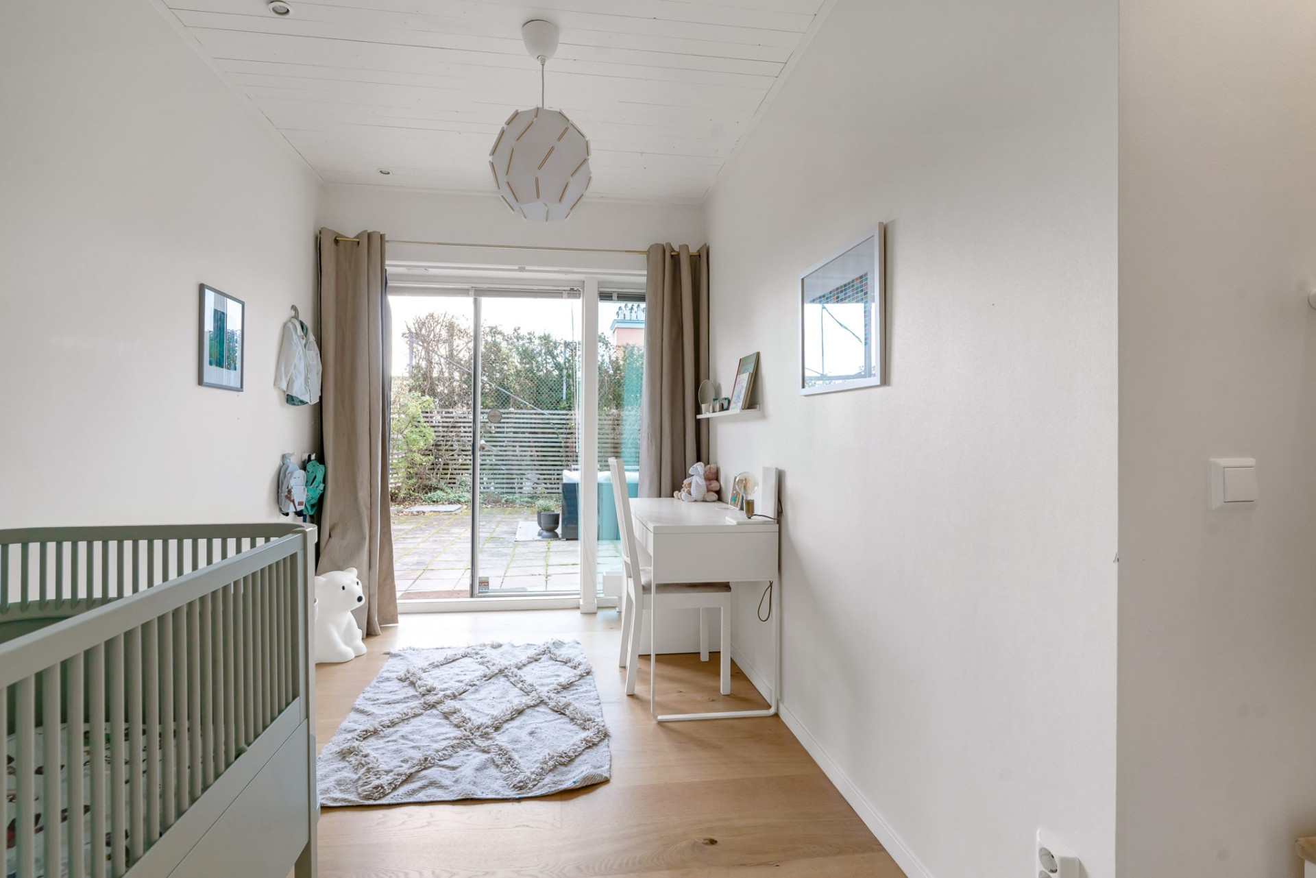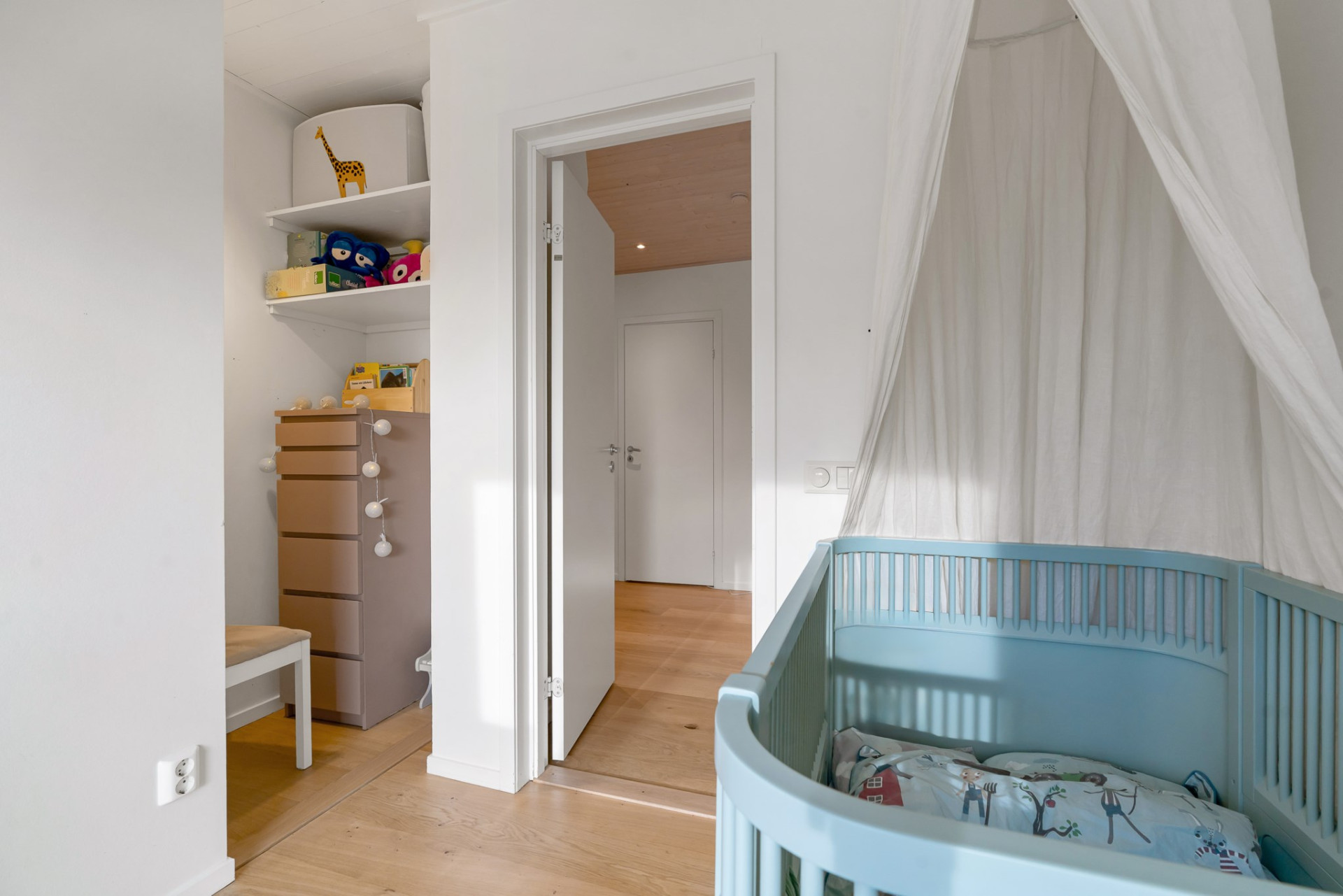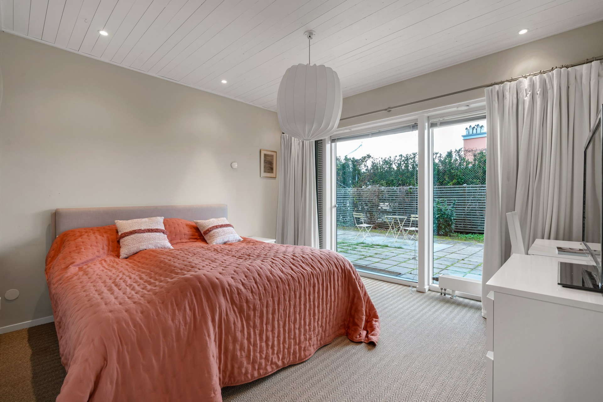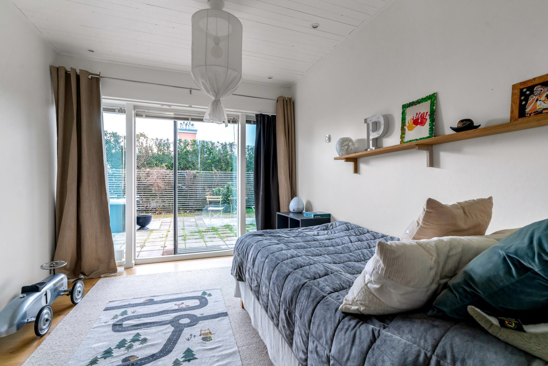 De tre sovrummen vetter alla mot den stora uteplatsen i söder, som nås via glasade skjutdörrspartier. Två av sovrummen har ekgolv och i föräldrasovrummet ligger en heltäckningsmatta.