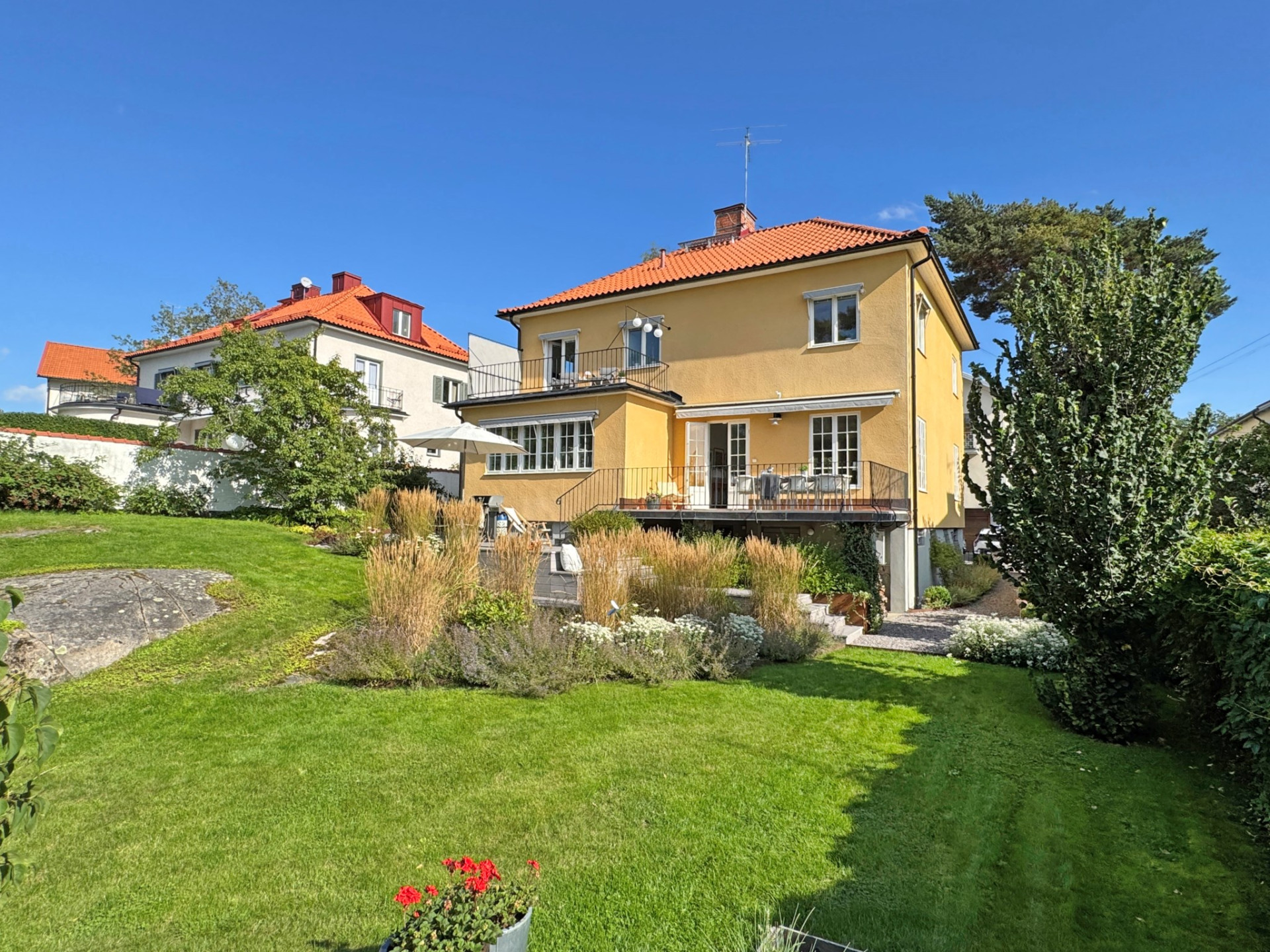 Den insynsskyddade tomten gränsar mot allmänning och är omsorgsfullt anlagd av en välrenommerad trädgårdsarkitekt med visionen att trädgården alltid ska blomma. Trädgården ligger i västläge och bjuder på rikligt med eftermiddags- och kvällssol – idealiskt för utemiddagar, umgänge eller lugna stunder i solnedgången.