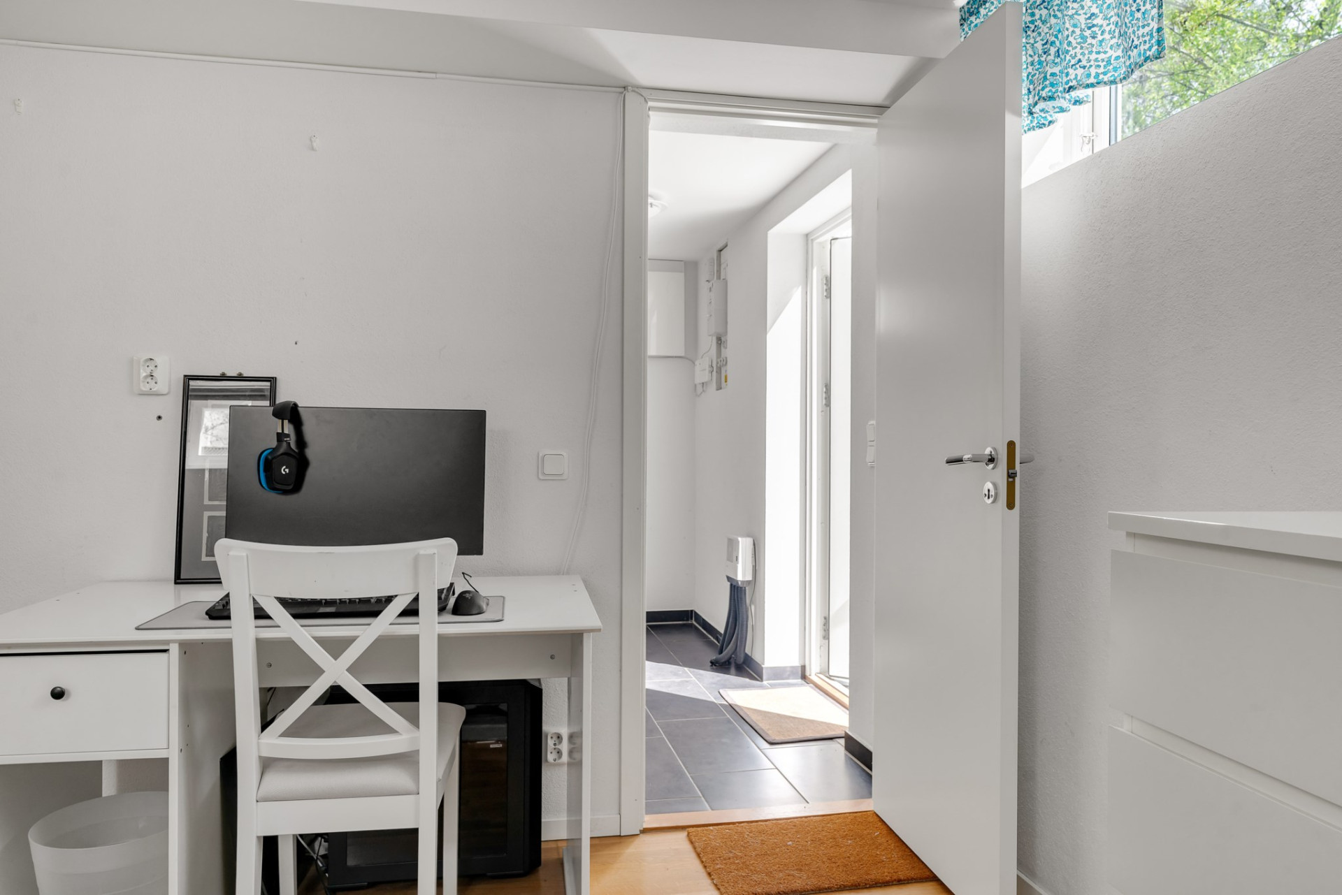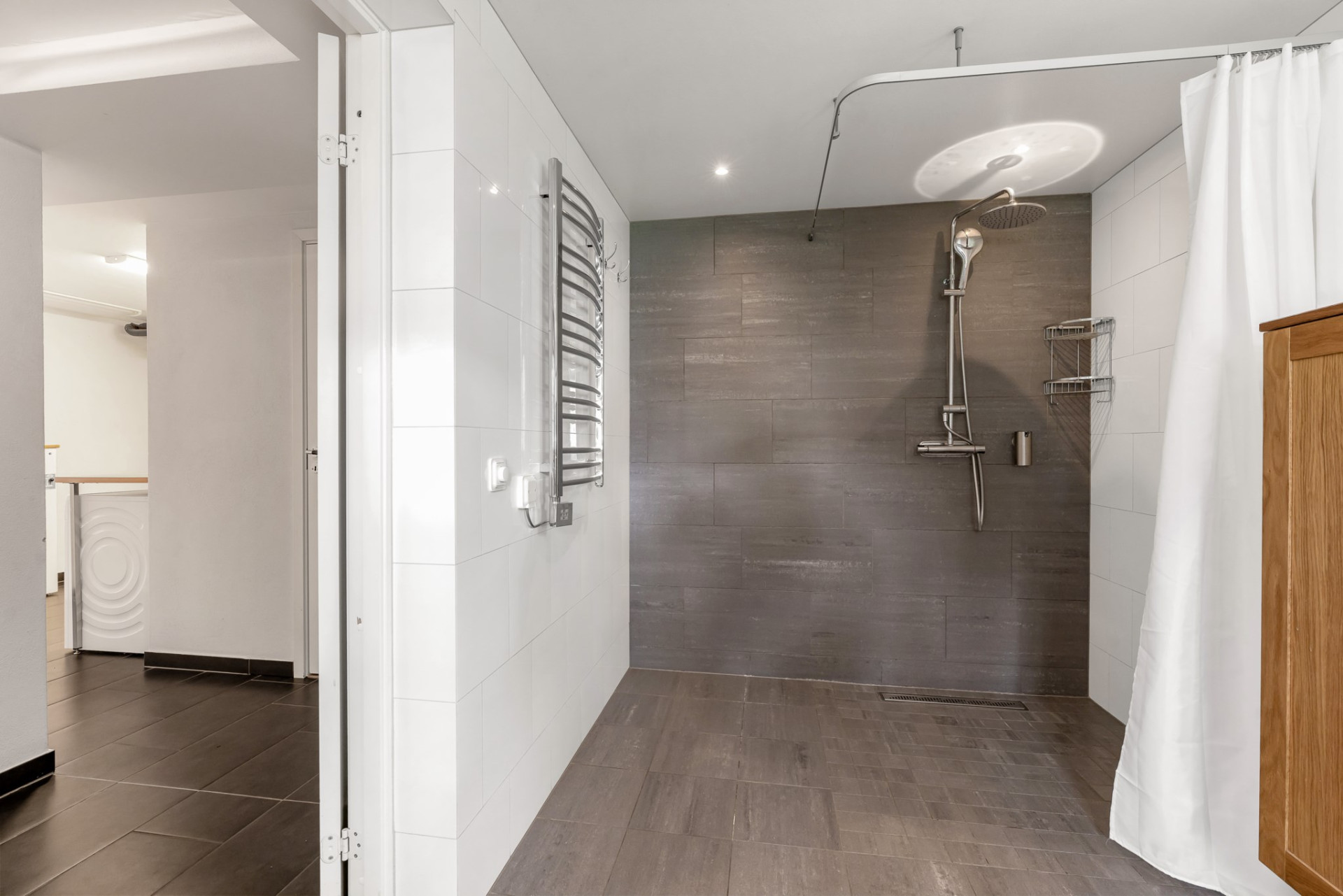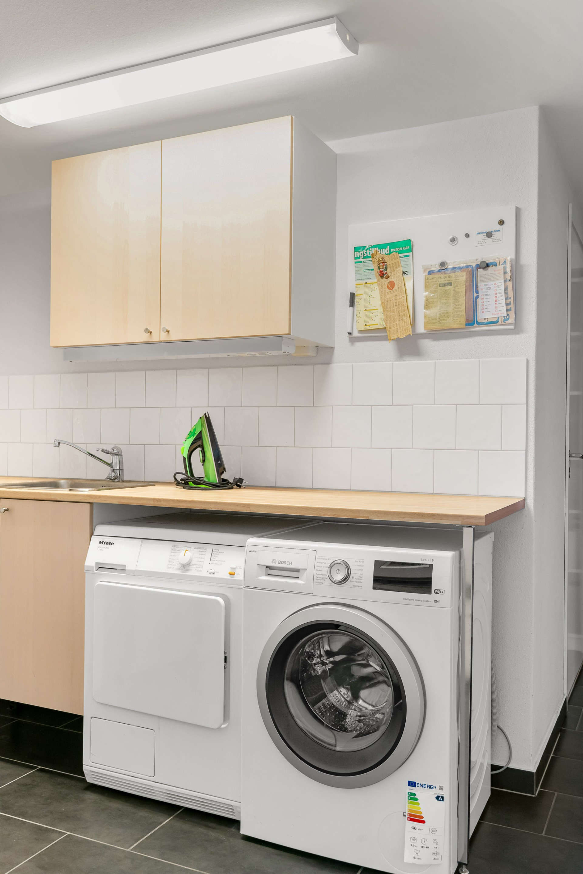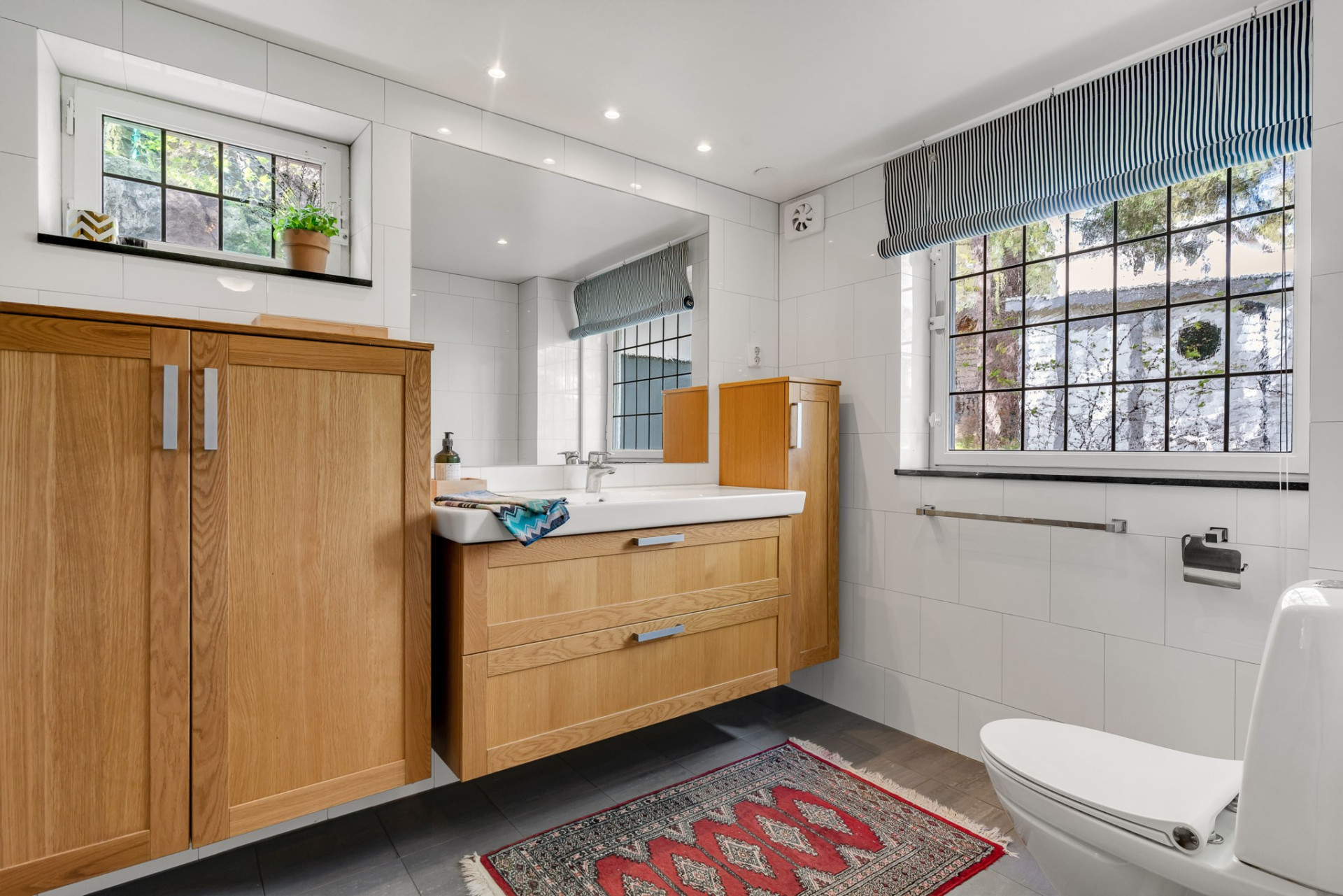 Från en trappa invid den inre hallen tar vi oss vidare ner till soutterängplan som även detta plan imponerar med ljus och rymd. Totalrenoverat med vattenburen golvvärme och högt i tak. Här finns i dagsläget ett stort badrum med dusch, två sovrum eller allrum med parkettgolv som blir perfekt för såväl tonåringen eller den långväga gästen. Groventré med tillhörande hall som ger oändliga förvaringsmöjligheter i många skåp och garderober och en praktisk tvättstuga med gott om plats för såväl upphängning som förvaring tack vare skåp och arbetsytor. Ett stort förråd sköter det mesta av förvaringen och innanför det finner vi ytterligare ett utrymme med dörr mot trädgården och en stor vinkällare med otroliga möjligheter. Endast fantasin sätter stopp!