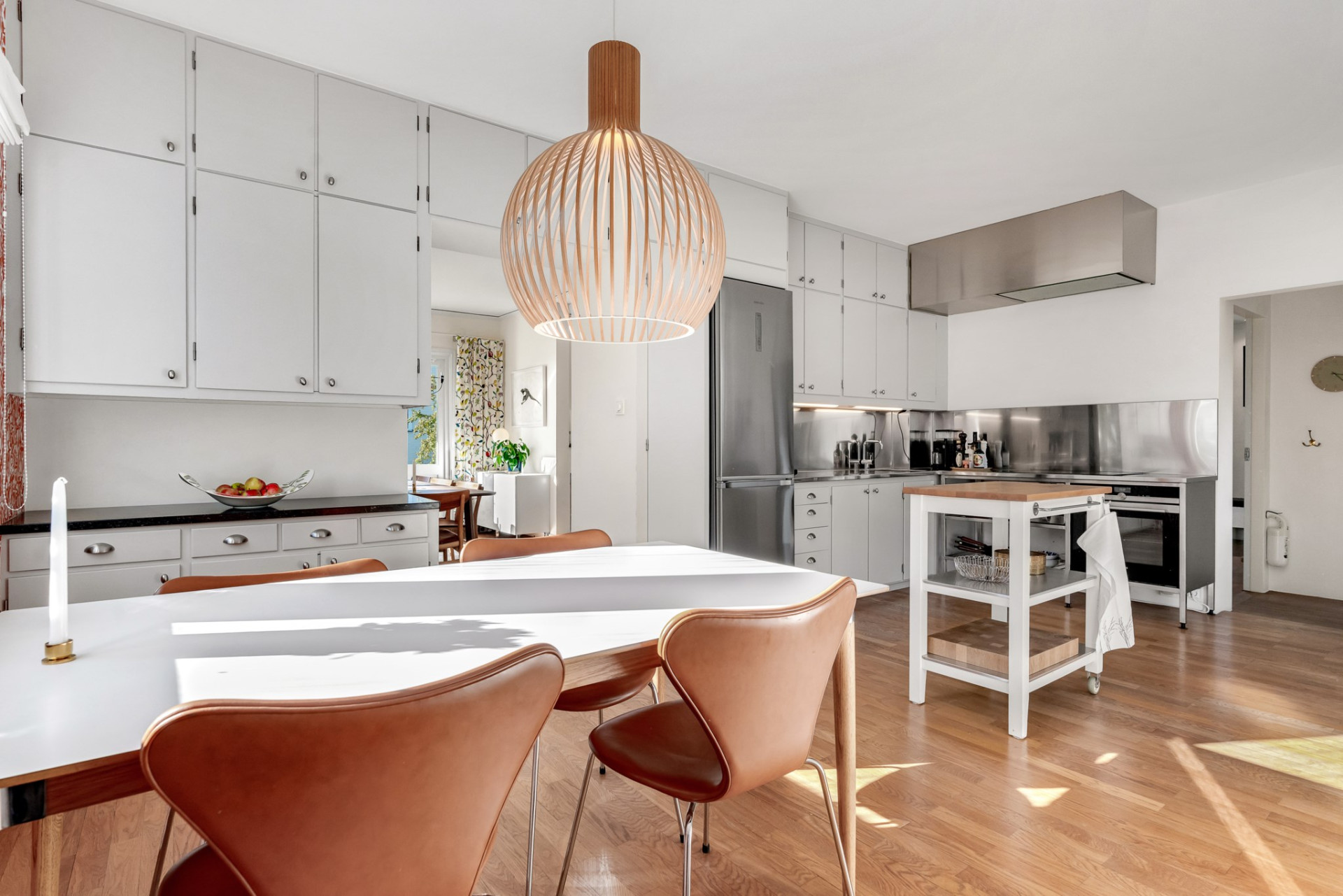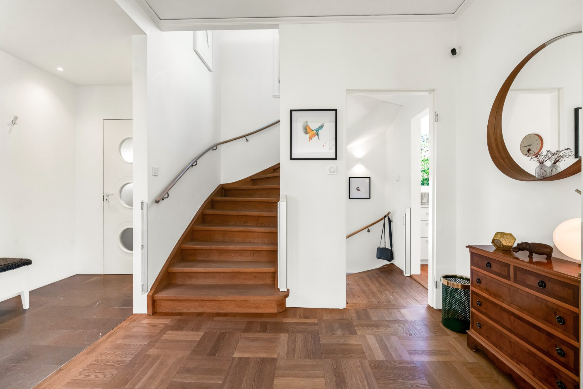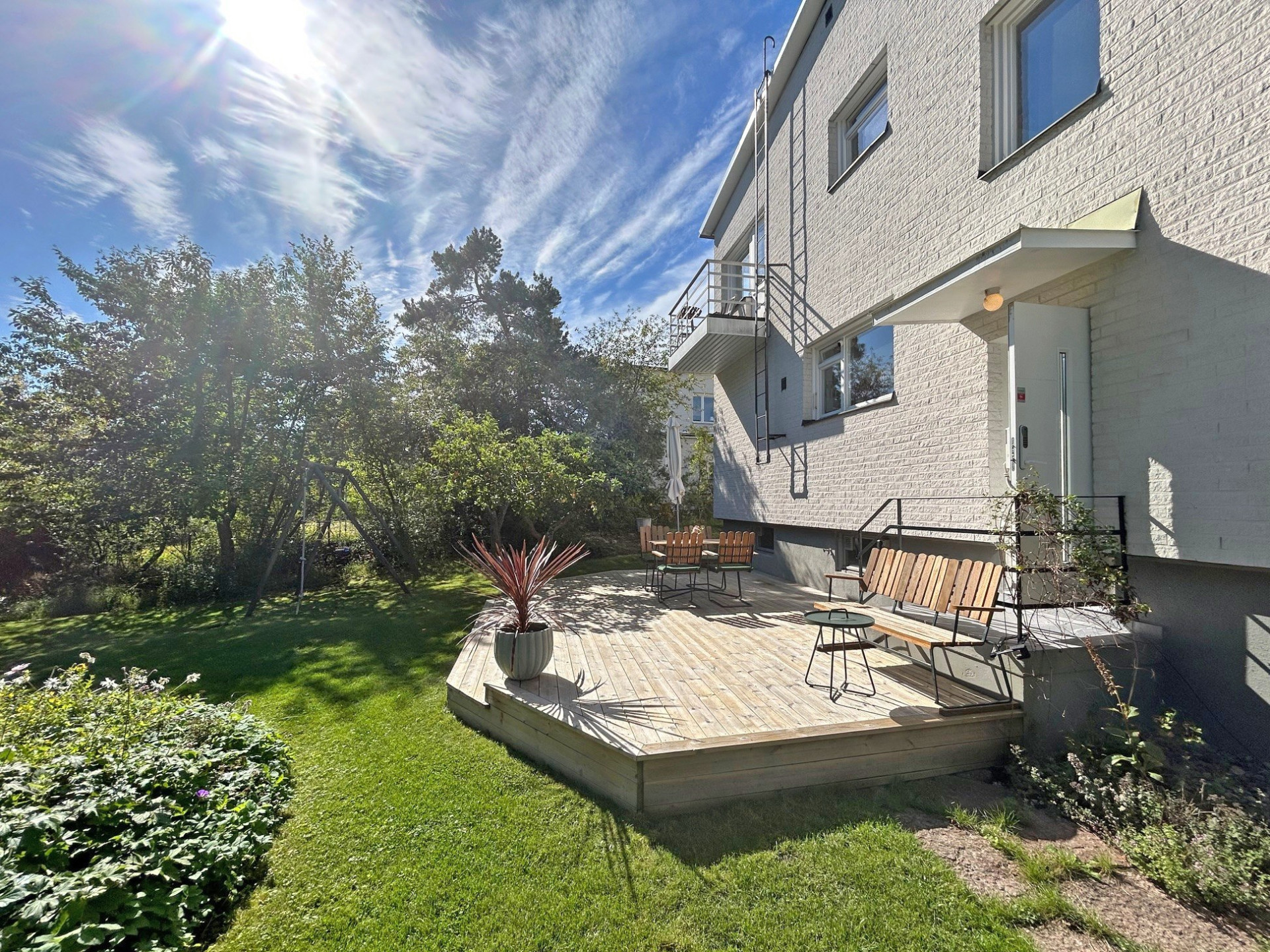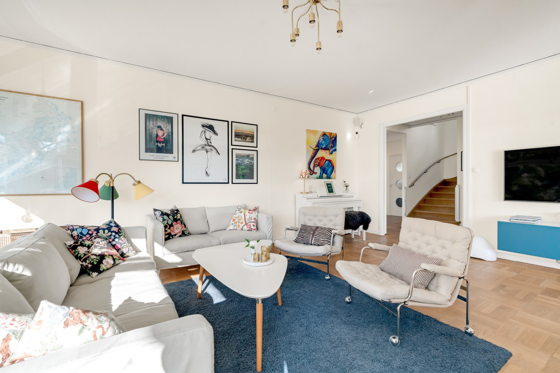 Här bor man kvalitativt i en rymlig och representativ villa med gångavstånd till tunnelbana, skolor, förskolor, grönområden och bad.