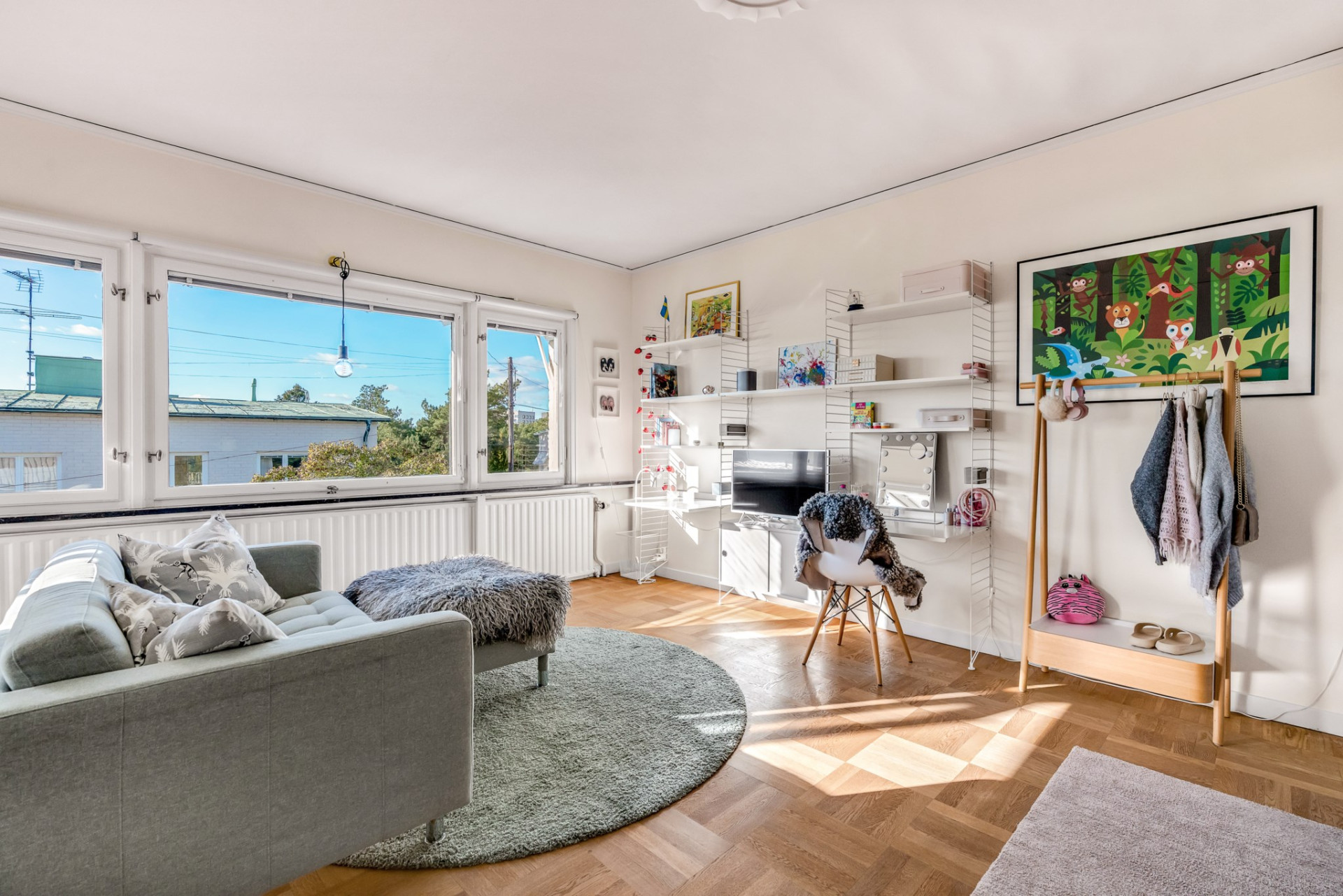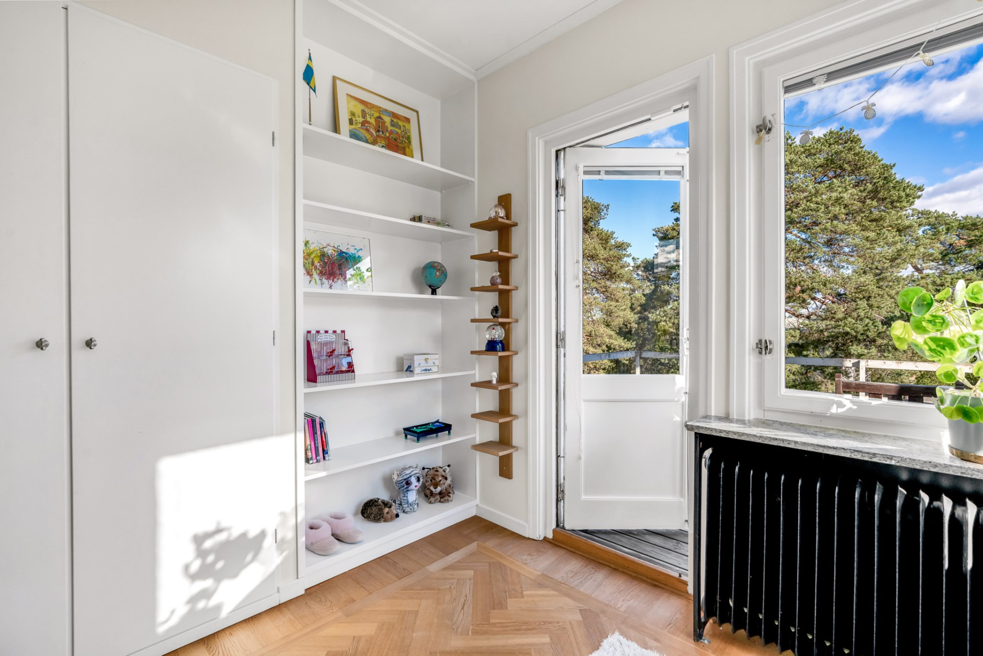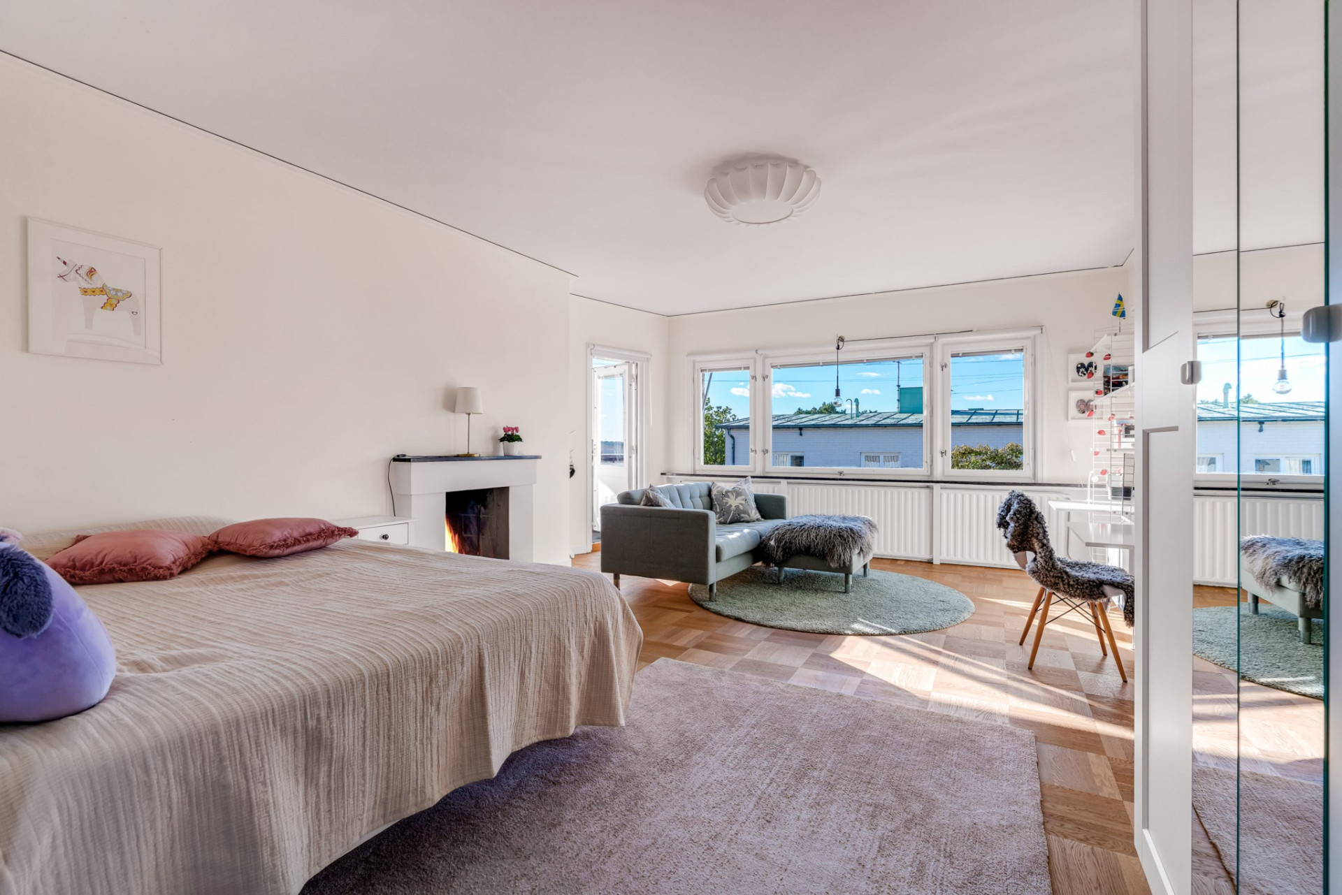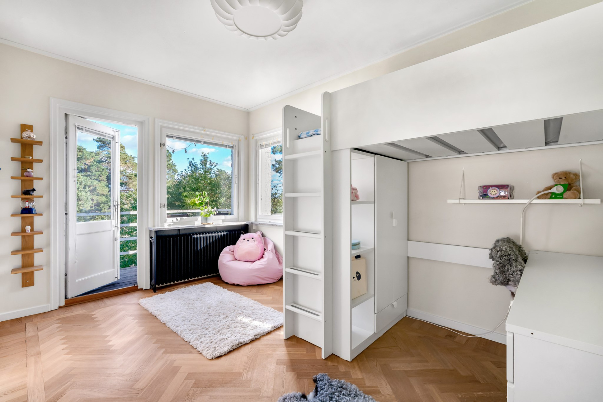 Välkommen till Södra Ängbys högst belägna villa - en synnerligen modern och tilltalande funkisdröm i toppskick. Villan är renoverad med stor hänsyn tagen till dess funkisursprung. Här kombineras modern och stilren design med välbevarade originaldetaljer. Spatiösa sällskapsytor, genomgående parkettgolv, två öppna spisar, tre balkonger, tre sovrum (möjlighet till fyra) samt en praktisk källare med tvättstuga, garage och gott om förvaringsutrymmen. Lättskött trädgårds-/naturtomt med uteplatser på anlagda trädäck. Tomten är härligt öppen och har solläge från tidig morgon till sen eftermiddag. Vill man njuta av kvällssolen finns två stora balkonger med västerläge. Villan har direkt närhet till underbara Ängbybadet samt kort promenad till både Judarskogen och till tunnelbana.
