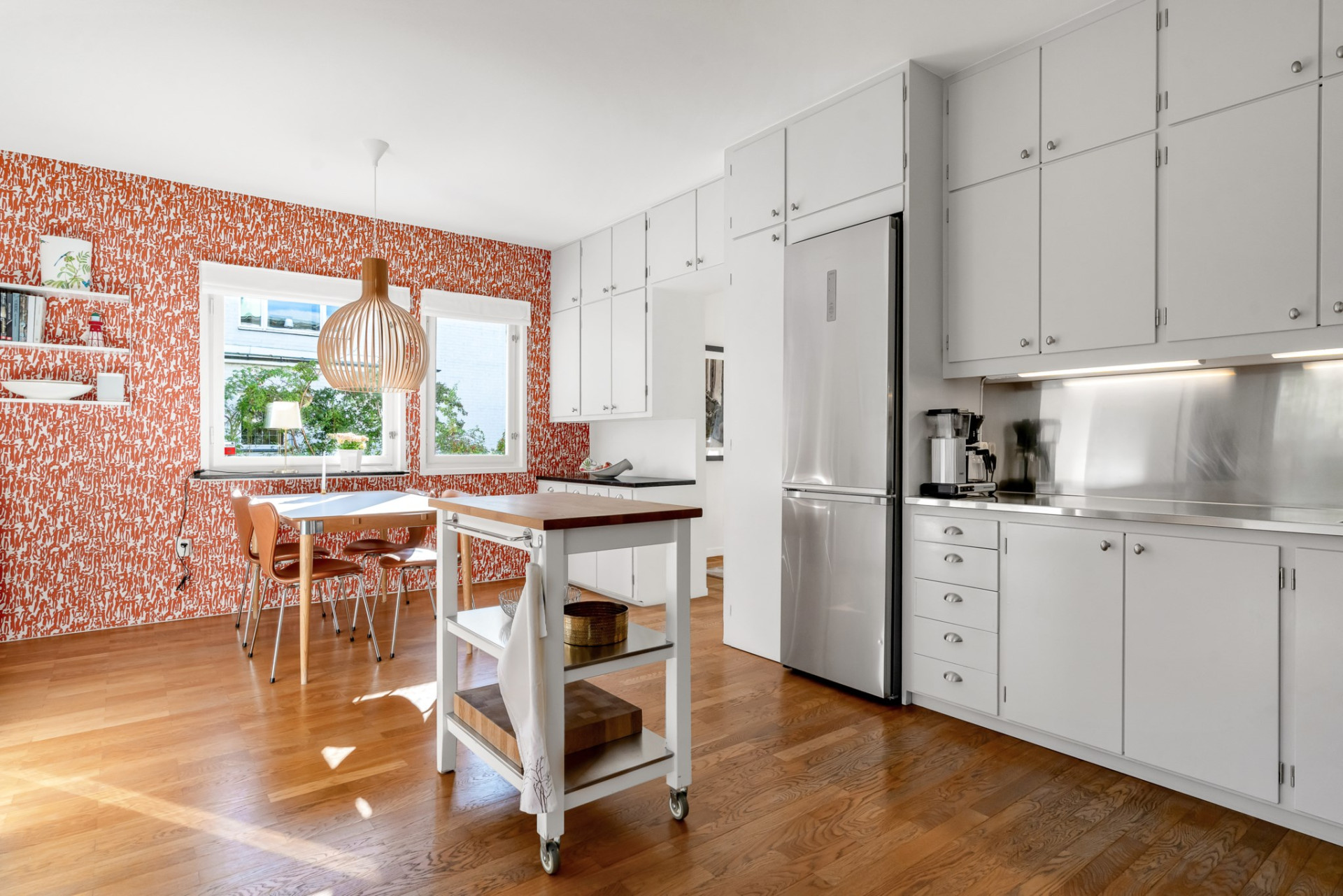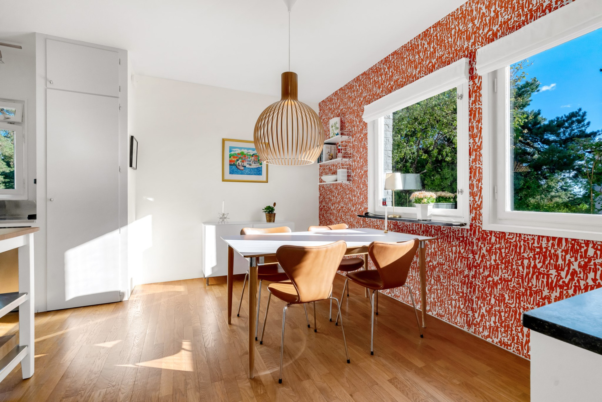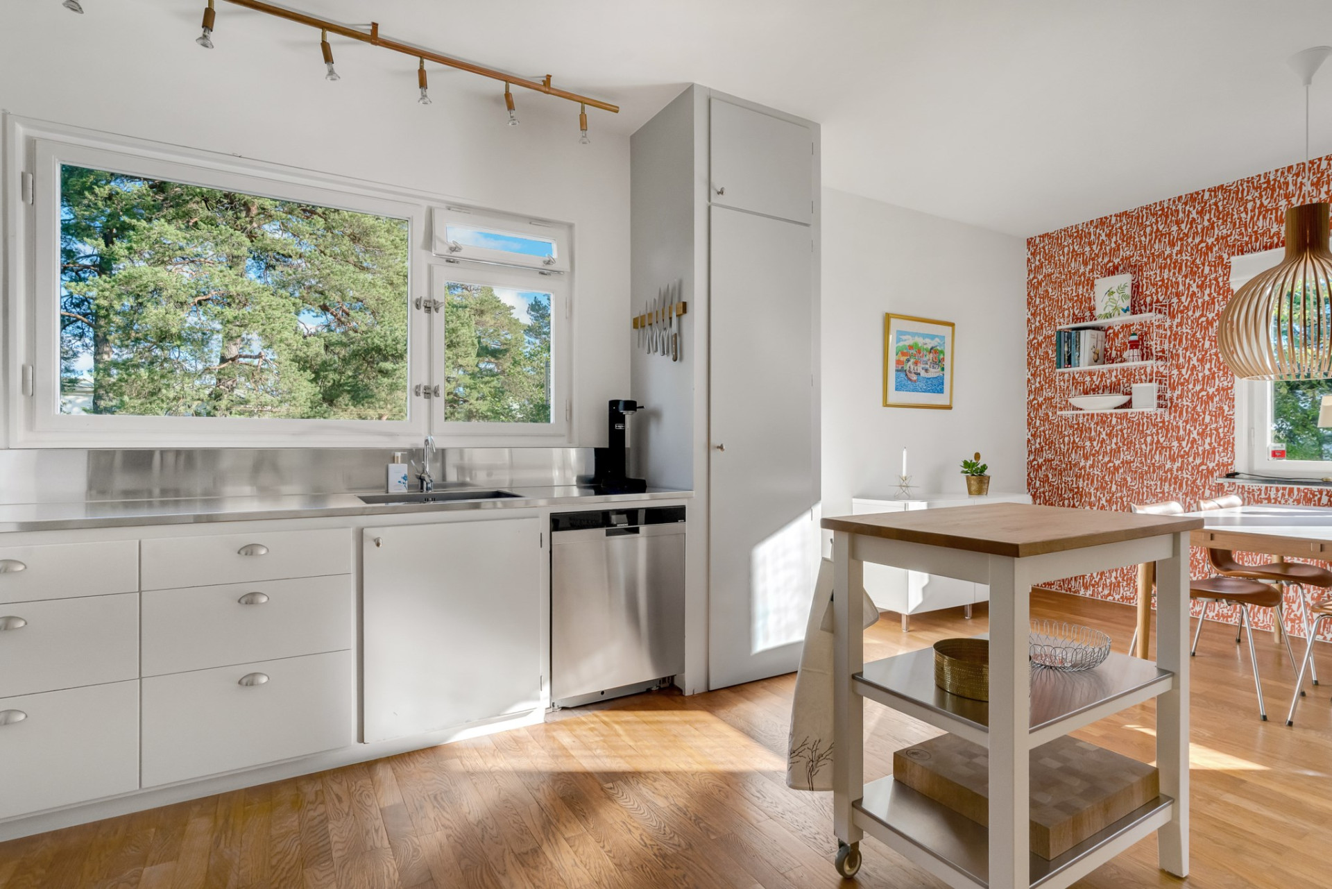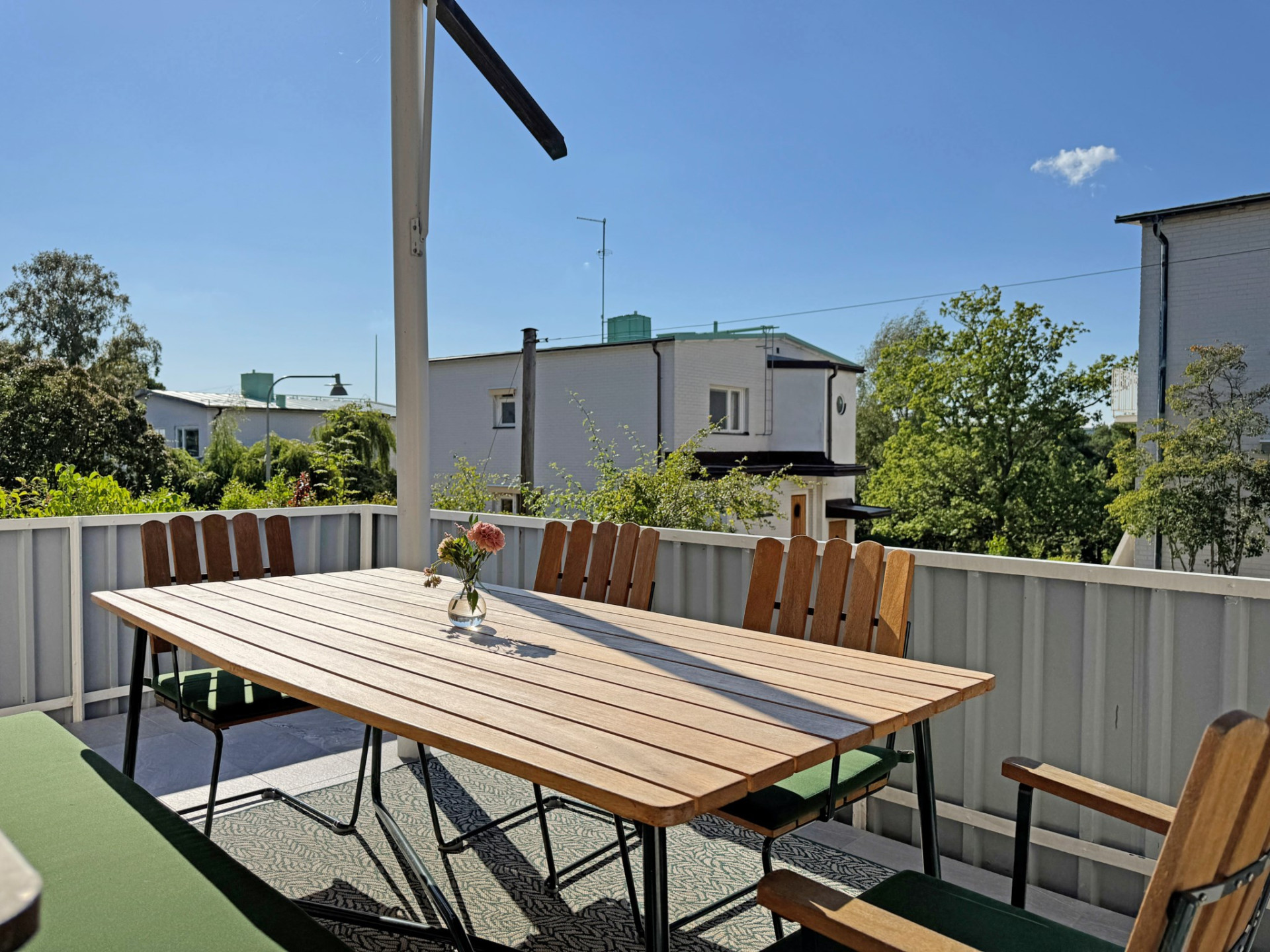 Välkommen till Södra Ängbys högst belägna villa - en synnerligen modern och tilltalande funkisdröm i toppskick. Villan är renoverad med stor hänsyn tagen till dess funkisursprung. Här kombineras modern och stilren design med välbevarade originaldetaljer. Spatiösa sällskapsytor, genomgående parkettgolv, två öppna spisar, tre balkonger, tre sovrum (möjlighet till fyra) samt en praktisk källare med tvättstuga, garage och gott om förvaringsutrymmen. Lättskött trädgårds-/naturtomt med uteplatser på anlagda trädäck. Tomten är härligt öppen och har solläge från tidig morgon till sen eftermiddag. Vill man njuta av kvällssolen finns två stora balkonger med västerläge. Villan har direkt närhet till underbara Ängbybadet samt kort promenad till både Judarskogen och till tunnelbana.