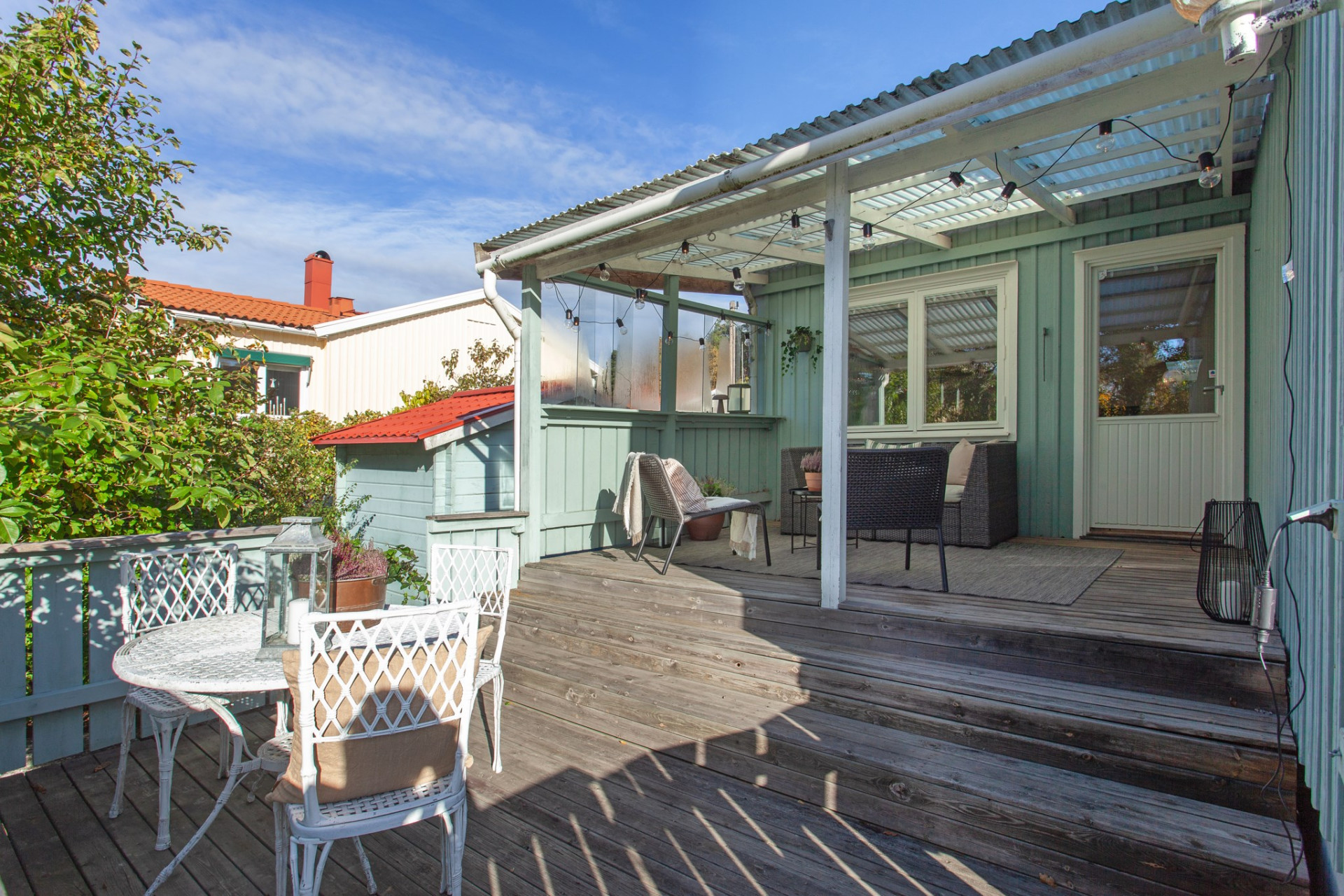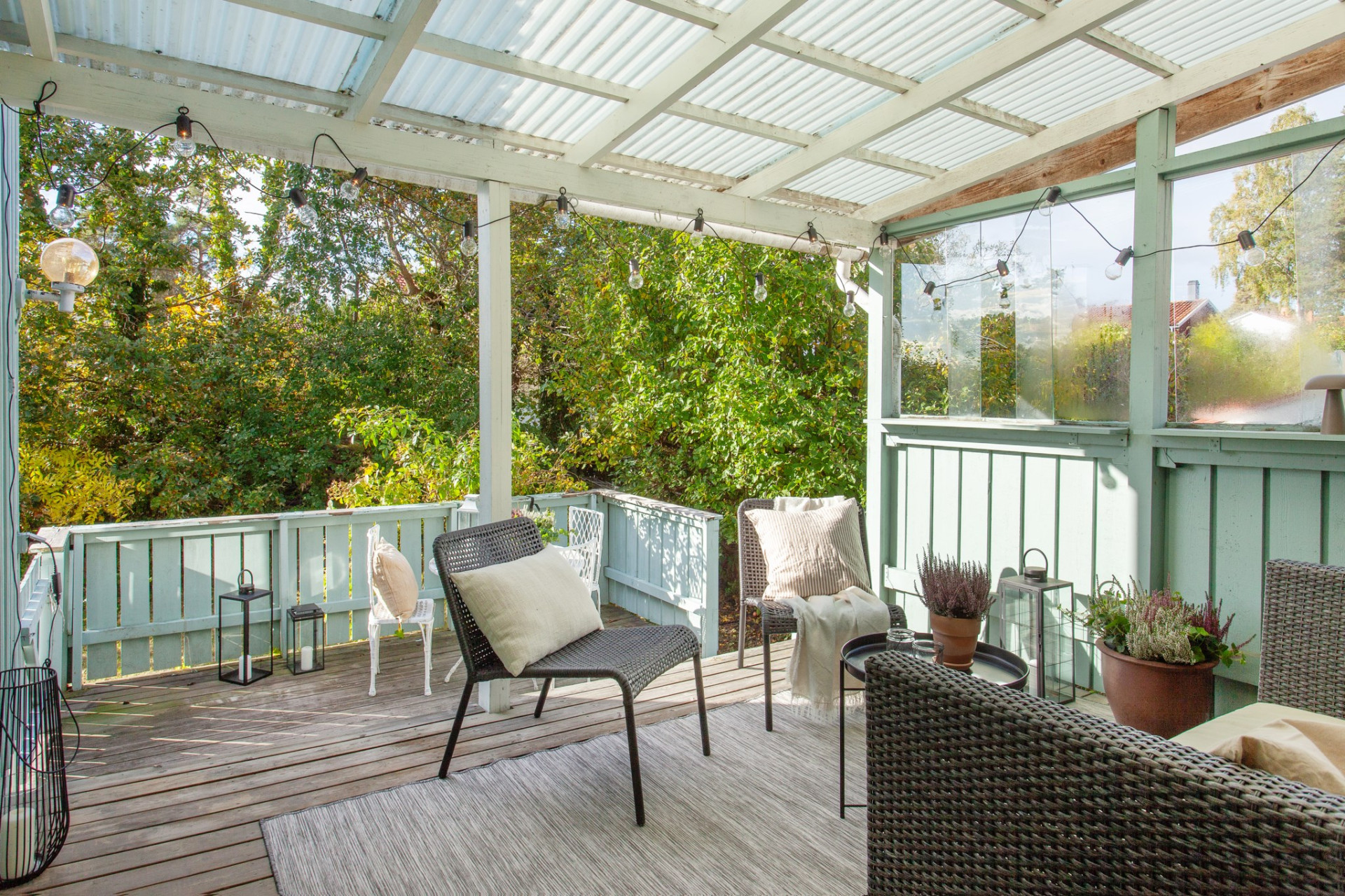 Från vardagsrummet leder en dörr ut till en generös altan i sydvästläge, med utsikt över den soliga och ostörda trädgårdstomten – en idealisk plats för sommarens alla måltider och stunder i solen. I husets tillbyggda del finns ett stort sovrum med hel garderobsvägg och fönster mot trädgården – ett rofyllt rum som passar perfekt som master bedroom. Det rymliga köket erbjuder gott om förvaring bakom många skåp och lådor, samt plats för matbord vid fönstret. Ett trevligt rum för såväl vardagsfrukost som middag med familj och vänner.