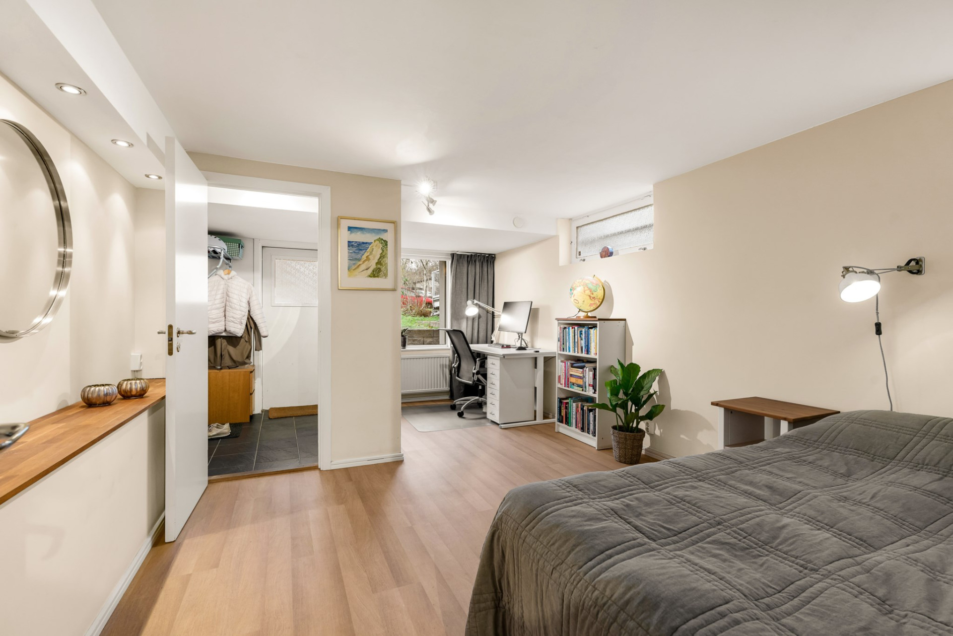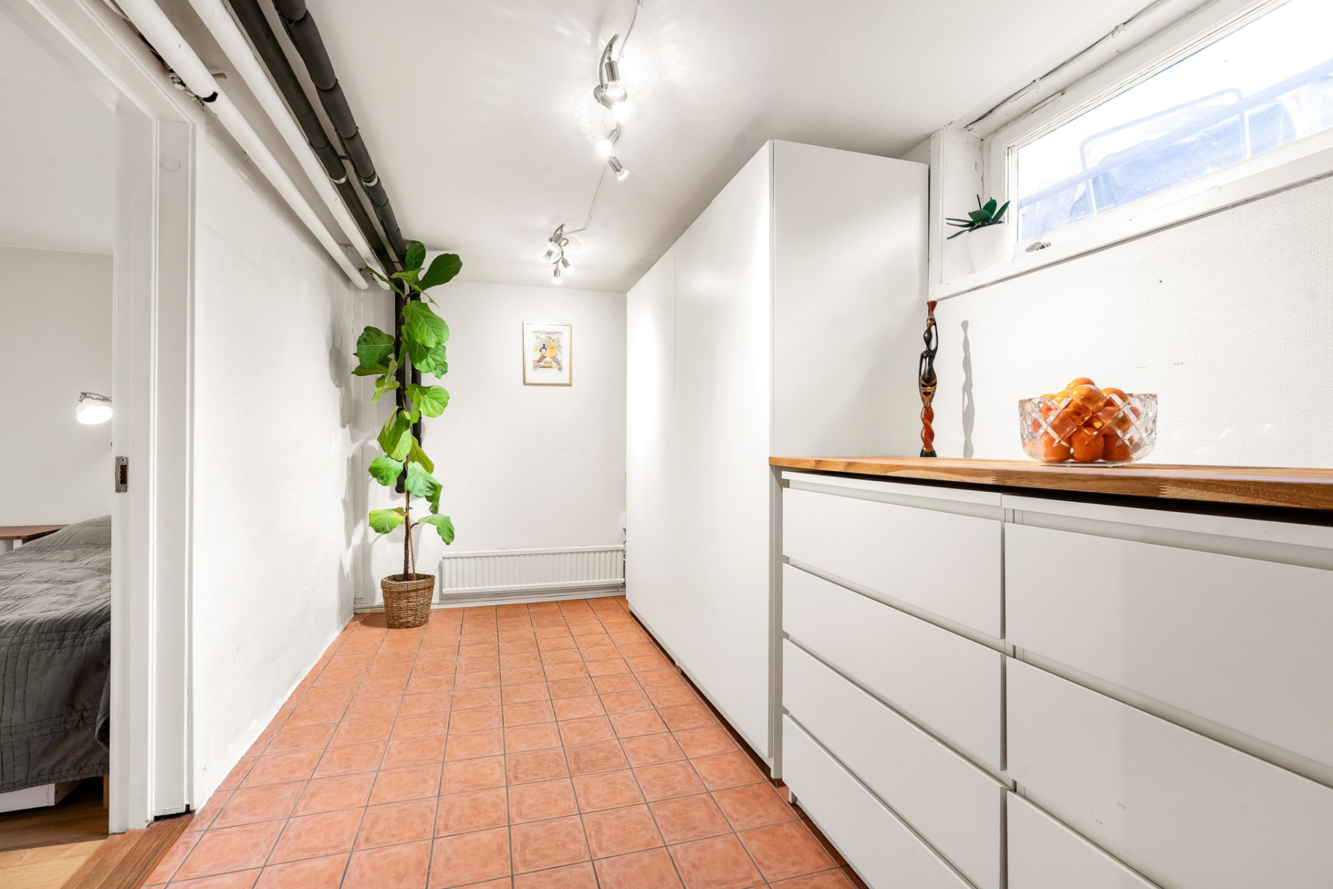 Källarplanet rymmer en mängd funktionella utrymmen och gör vardagen enkel och välorganiserad. Här finns tvättstuga, dusch och bastu, flera förråd, matkällare och en praktisk groventré. Dessutom finns ett gästrum eller extra sovrum, perfekt för både långväga gäster, tonåringen eller som ett avskilt arbetsrum. Allt man kan önska!