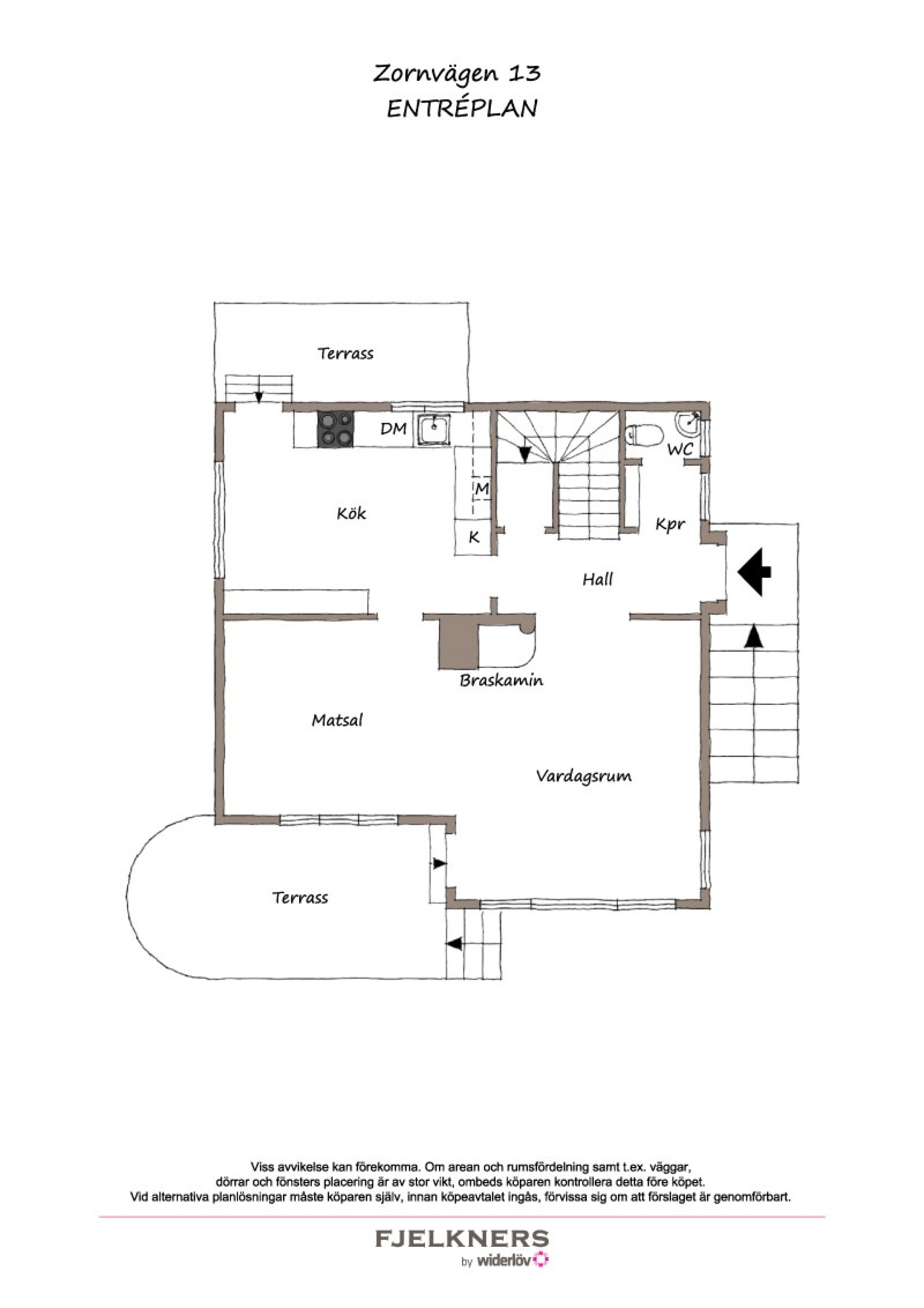 Hallen välkomnar med fiskbensparkett och mycket ljus. Praktisk avhängning i ett mindre kapprum och gäst wc med elgolvvärme. Hela entréplanet präglas av ett naturligt flöde mellan de sociala ytorna, det ljusa matrummet erbjuder plats för många och imponerar med en värmande öppen spis med kassett och utgång till den rymliga terrassen med fri utsikt och kvällssol. Stora fönsterpartier skänker mycket ljus och i fil med matrummet väntar vardagsrummet med plats för stor soffmöbel och ingång till köket. Köket i stilrent vitt är generöst tilltaget med goda förvaringsmöjligheter och flera arbetsytor. Fötterna vilar vi på parkett med golvvärme och från köksdörren kliver du sedan enkelt rakt ut på baksidan där den ljuvliga tomten breder ut sig.