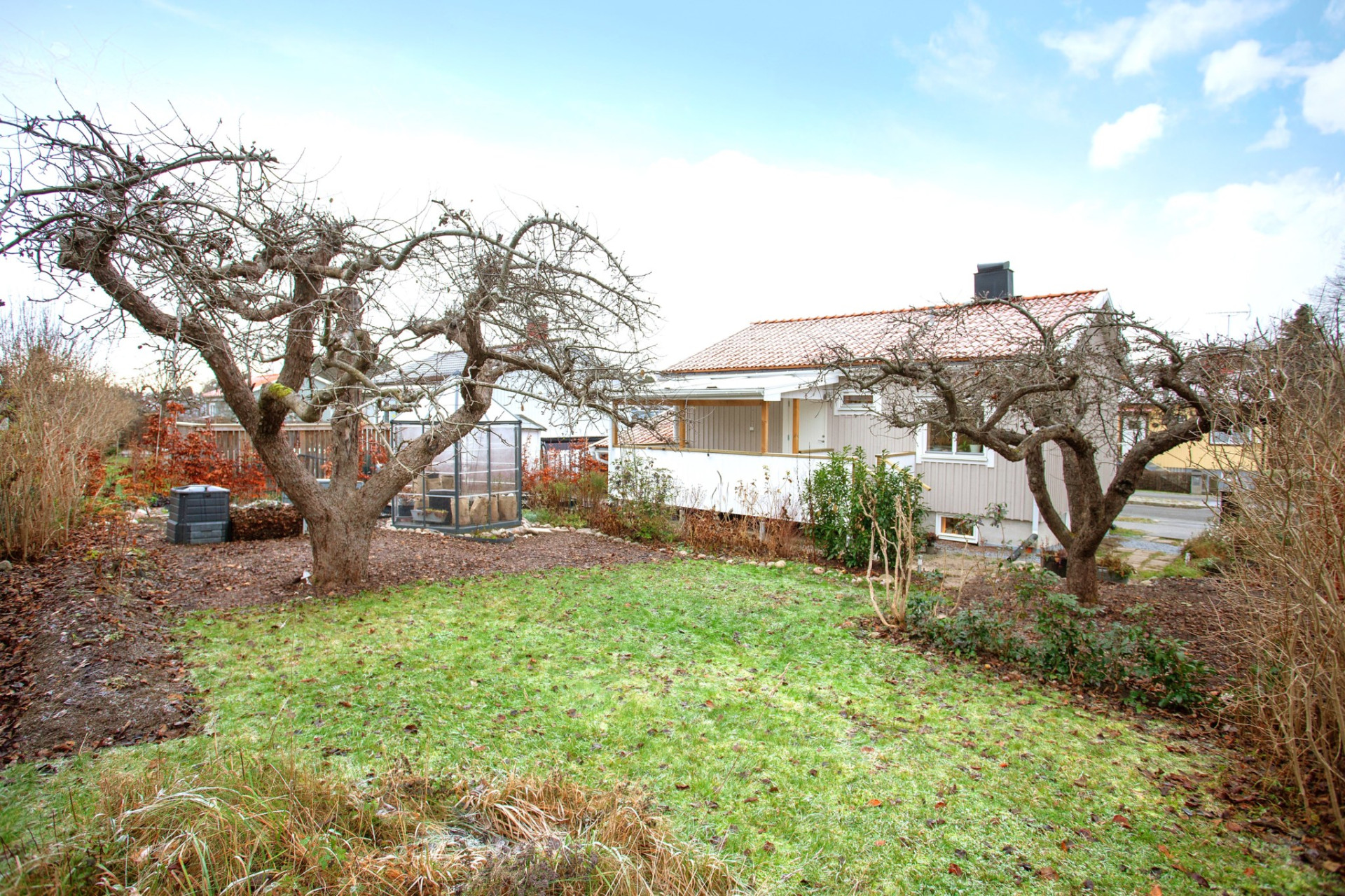 Trivsamt kedjehus med grönskande solig hörntomt